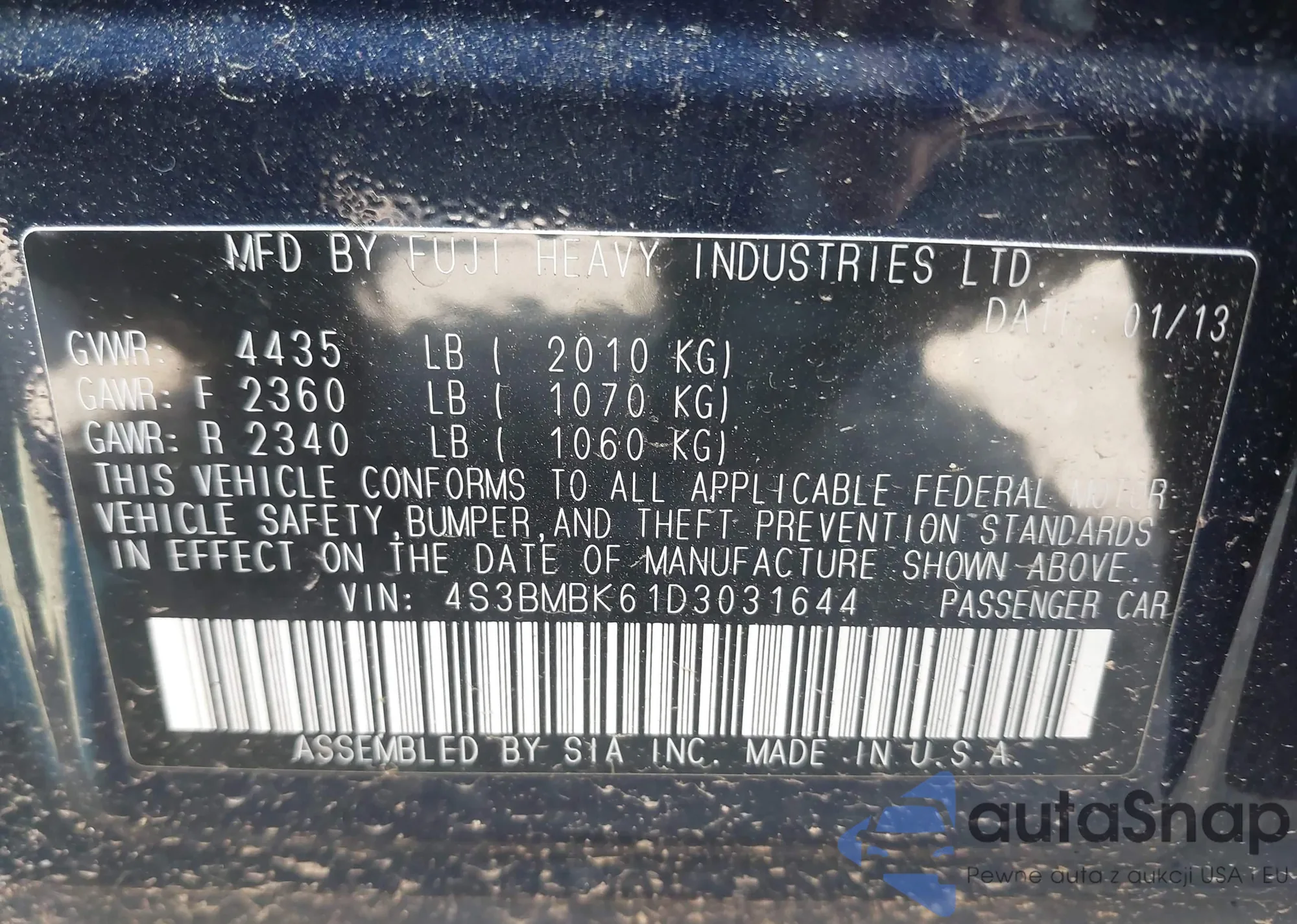 • VIN 4S3BMBK61D3031644