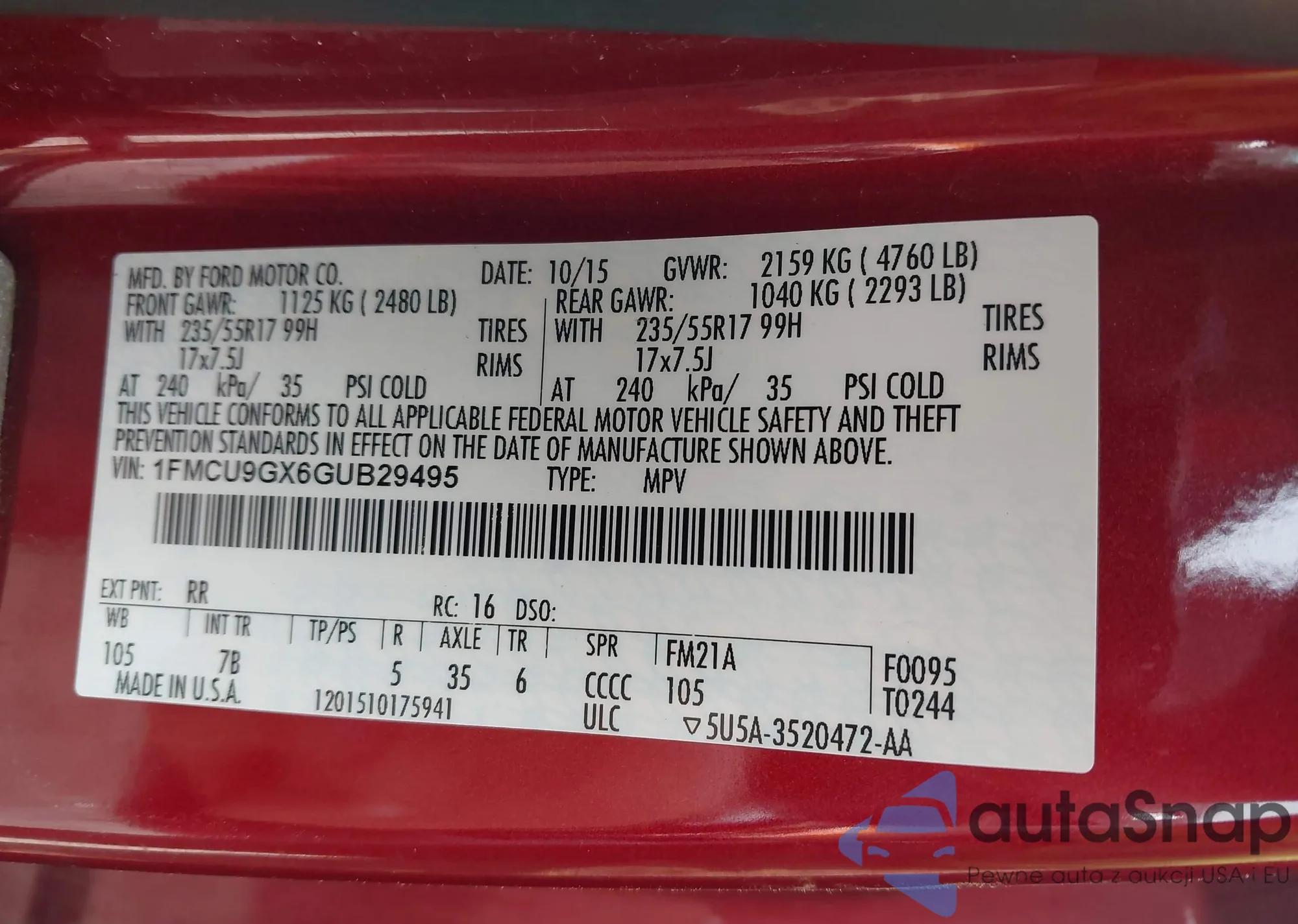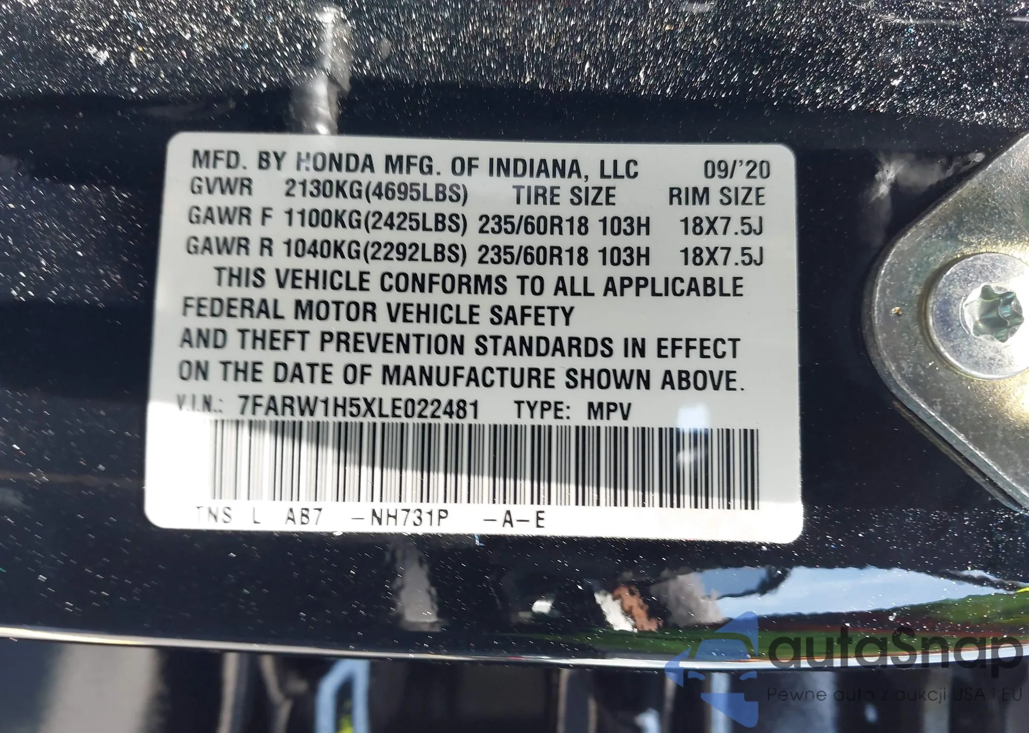 LOT: 42487558 VIN: 7FARW1H5XLE022481