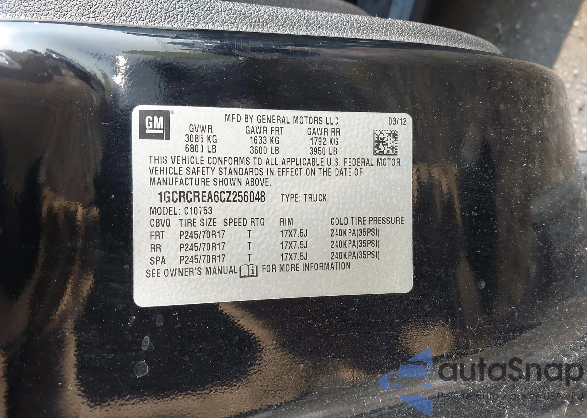 • VIN 1GCRCREA6CZ256048