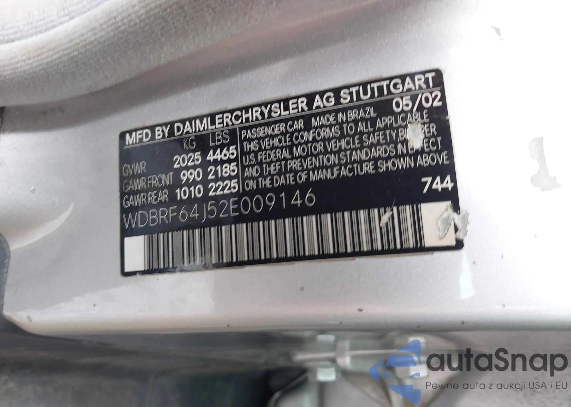 LOT: 42504210 VIN: WDBRF64J52E009146