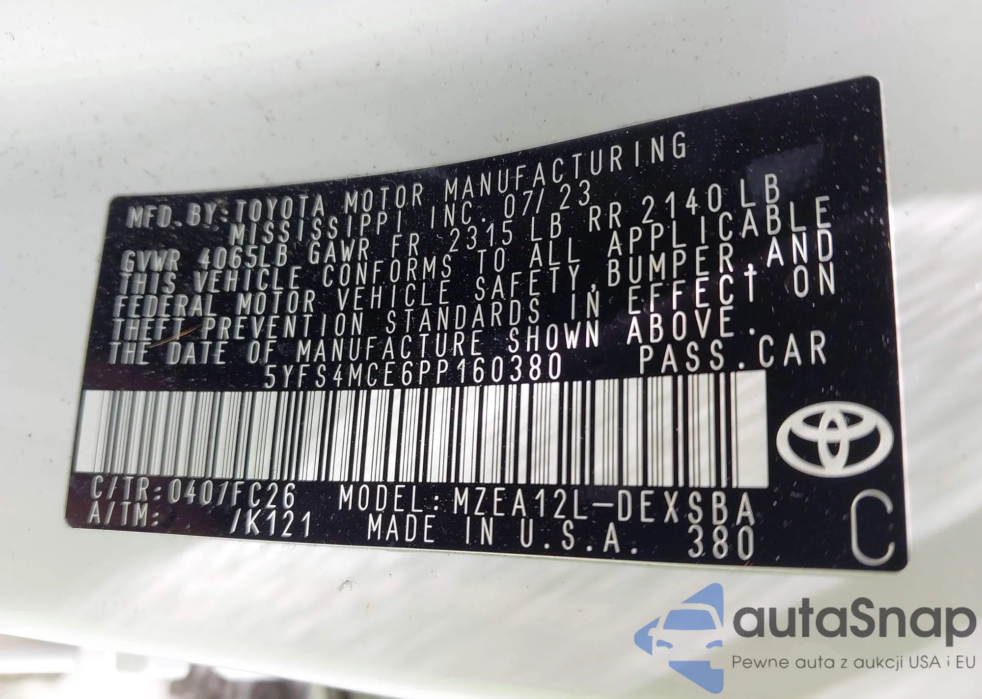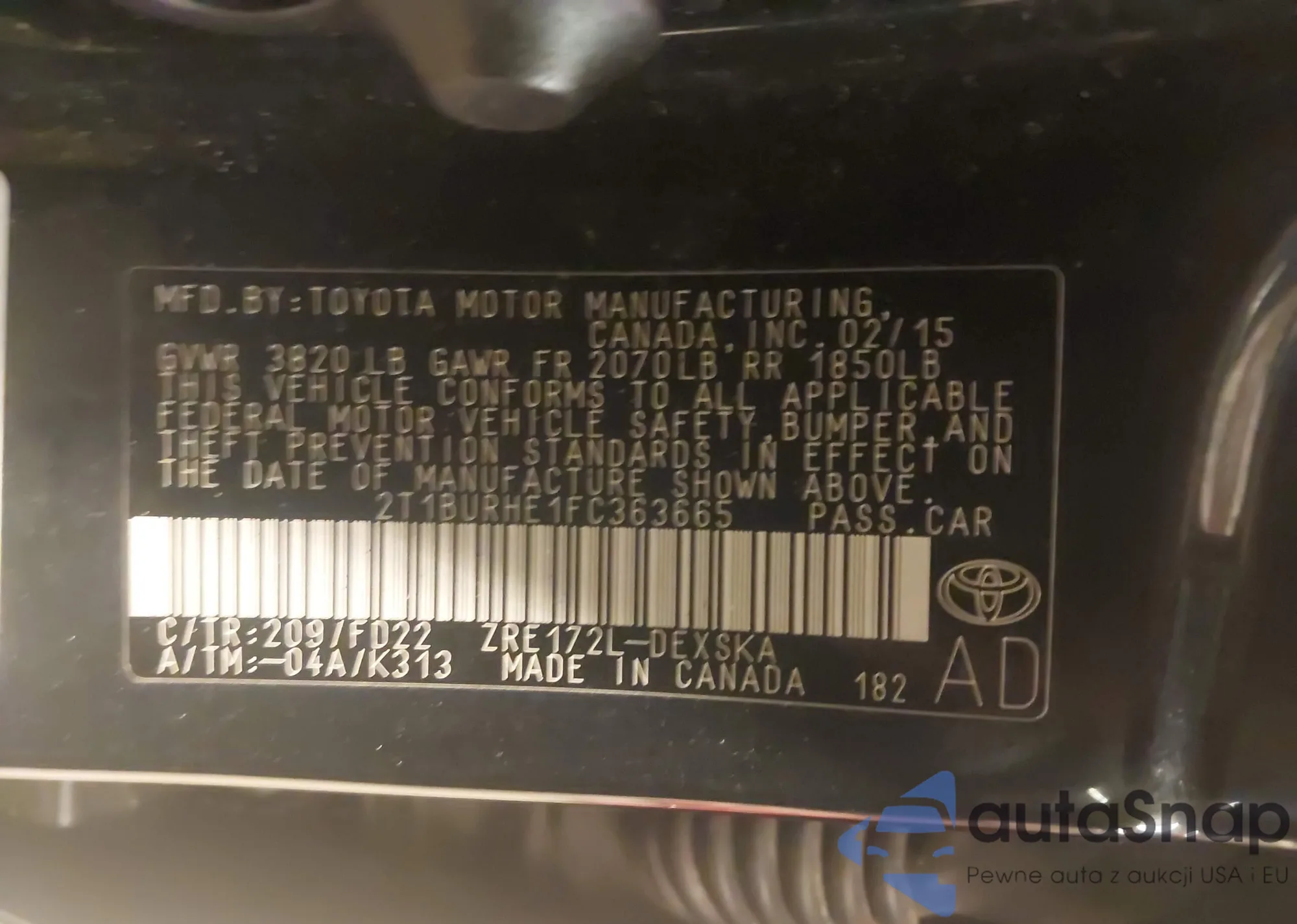 • VIN 4T1BF1FK3CU149274