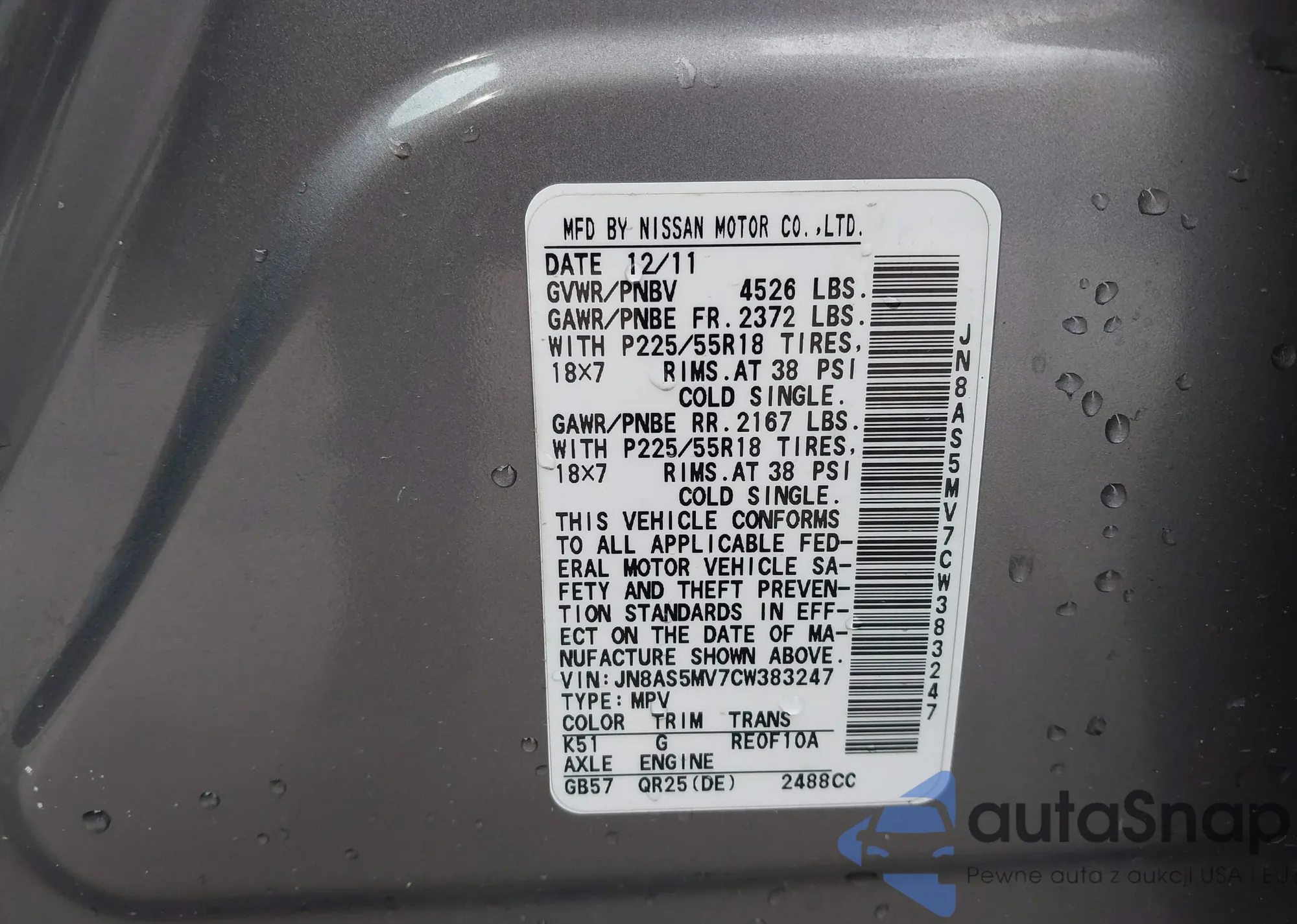 LOT: 41614496 VIN: JN8AS5MV7CW383247