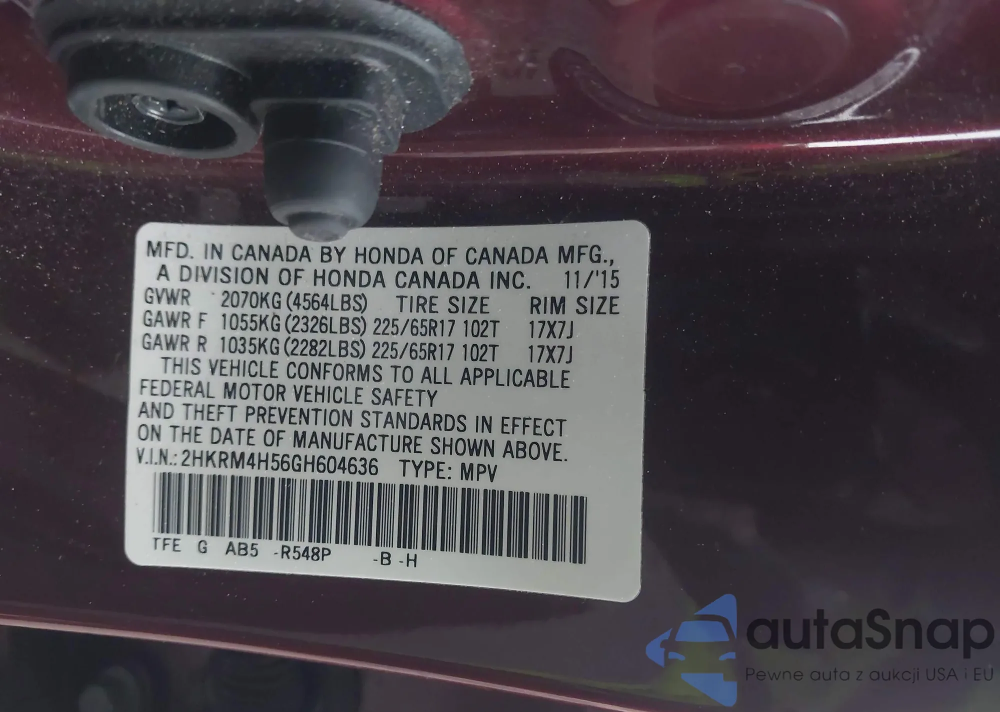 LOT: 42295851 VIN: 2HGFA1F51AH315128