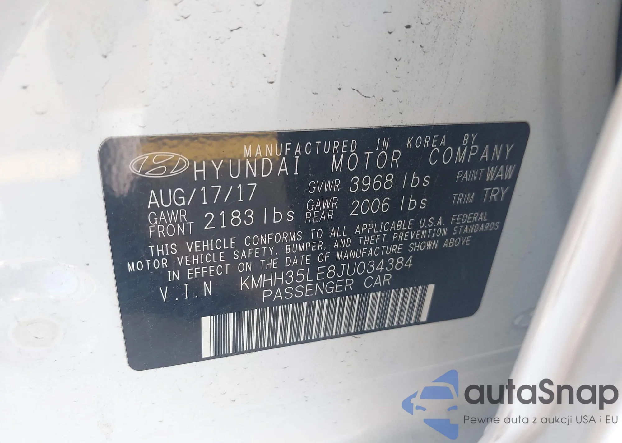 • VIN KMHH35LE8JU034384