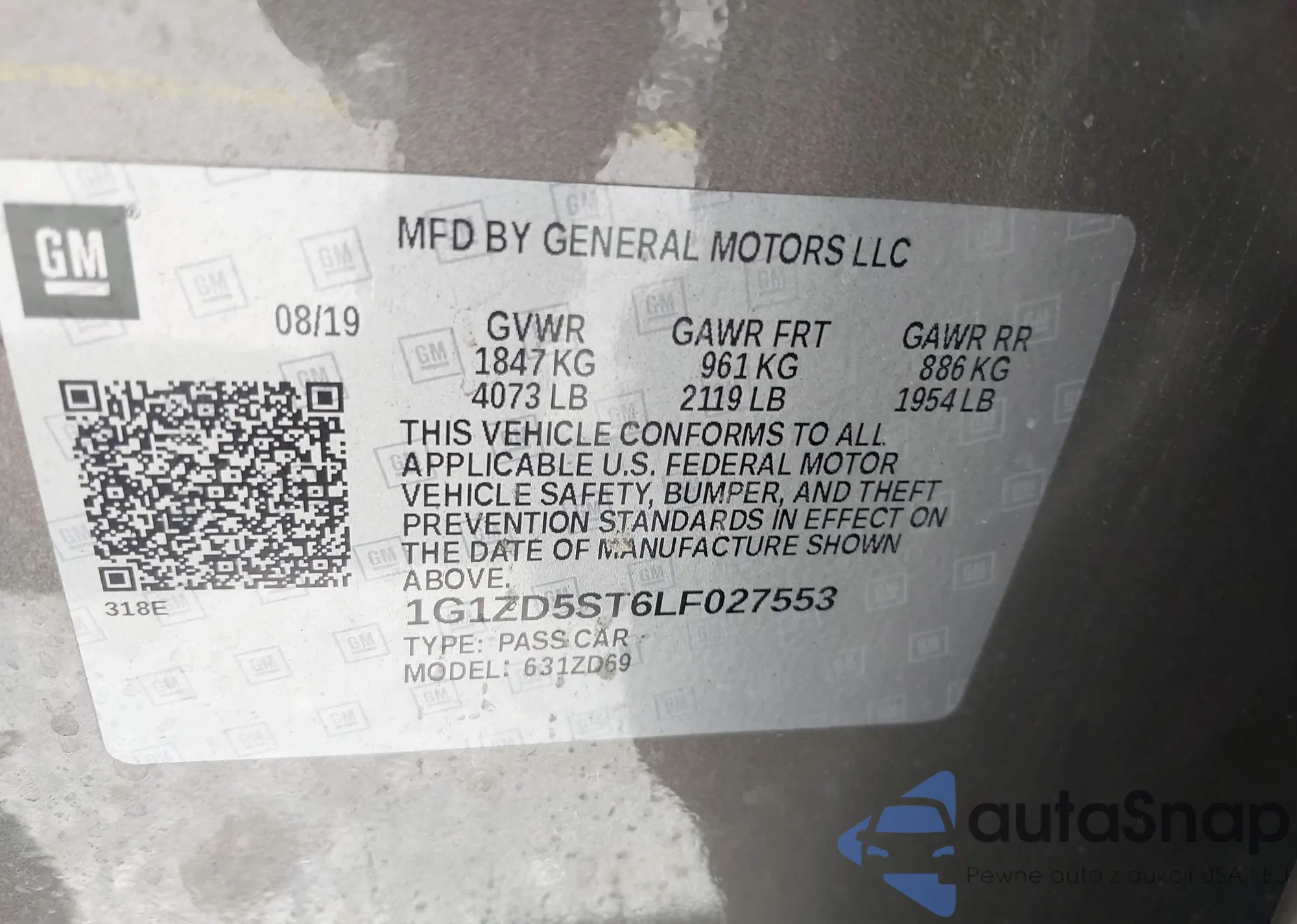 • VIN 1G1ZD5ST6LF027553