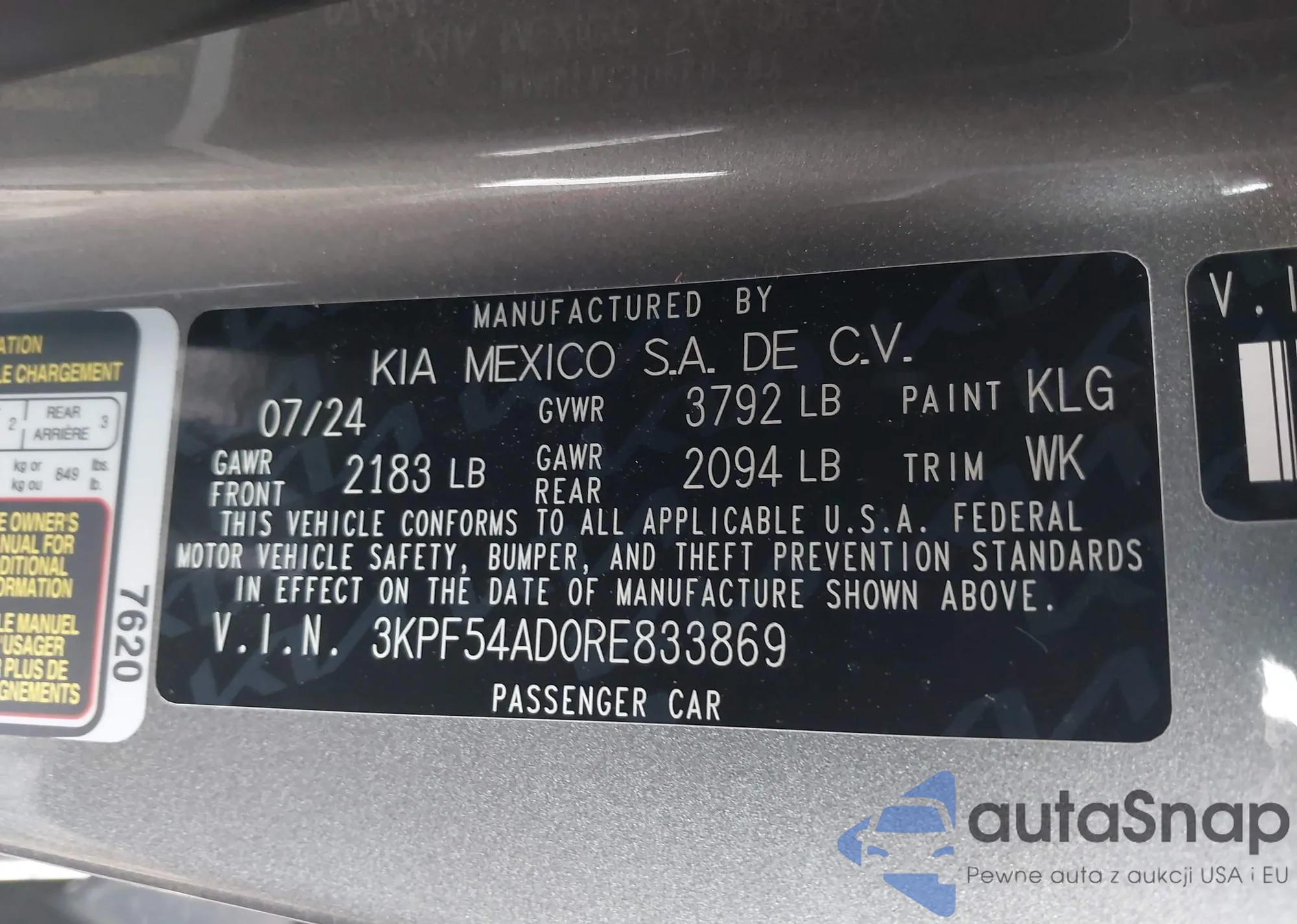 • VIN 3KPF54AD0RE833869