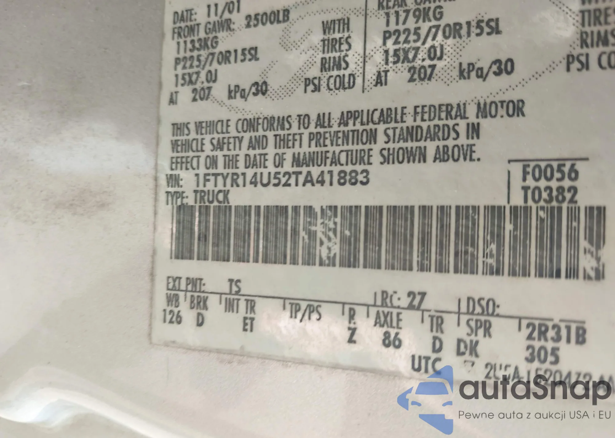 LOT: 42521723 VIN: 1FTYR14U52TA41883