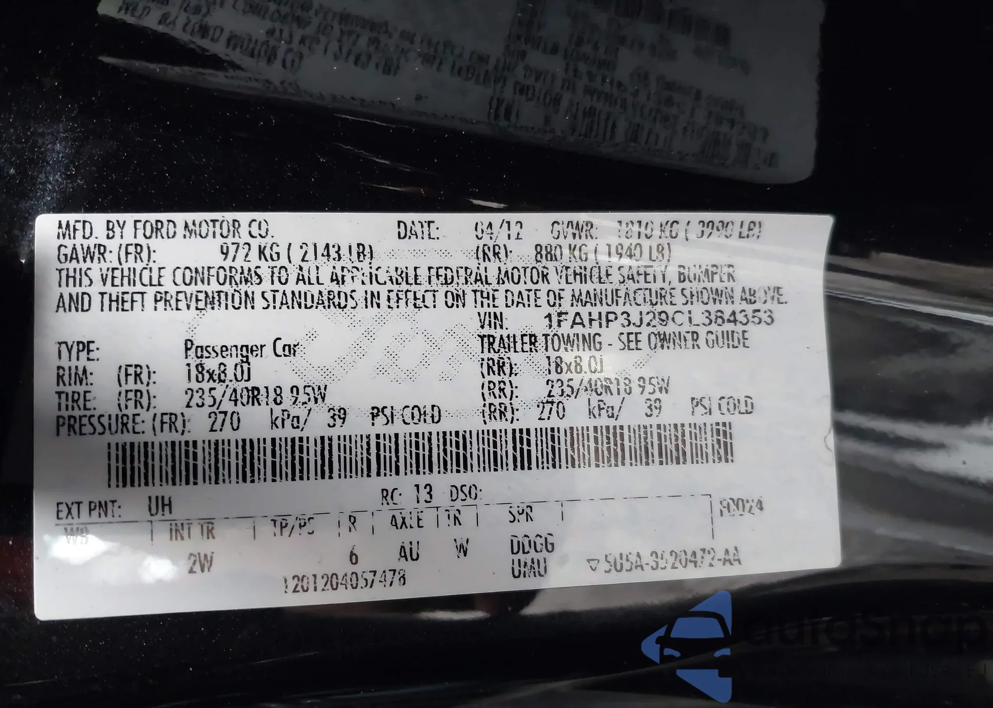• VIN 1FAHP3J29CL384353