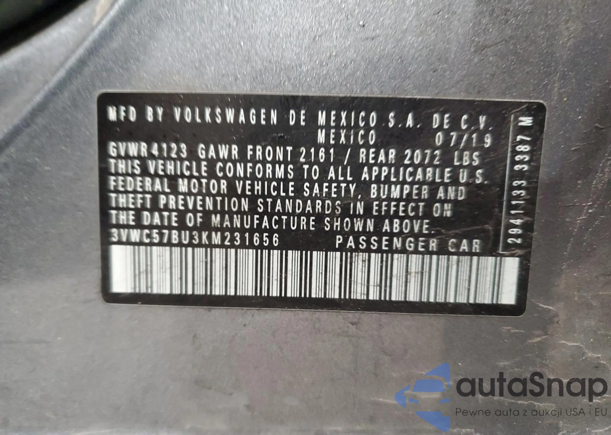 • VIN 3VWC57BU3KM231656