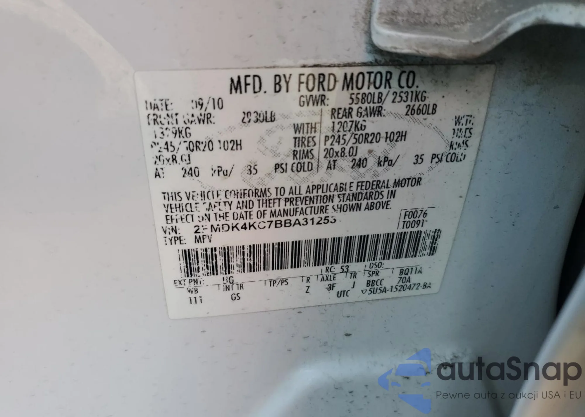 LOT: 59560295 VIN: 2FMDK4KC7BBA31253