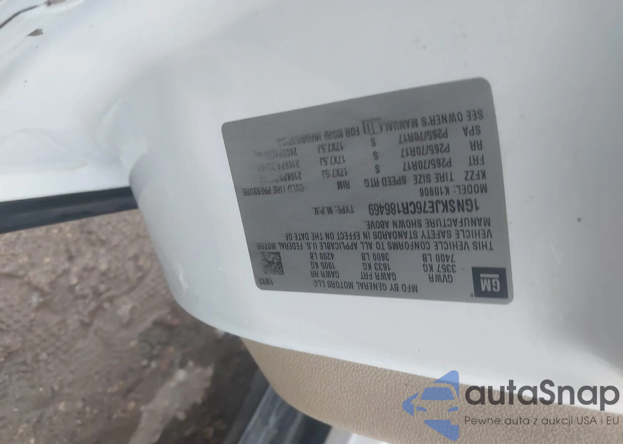 LOT: 42663947 VIN: 1GNSKJE76CR186469