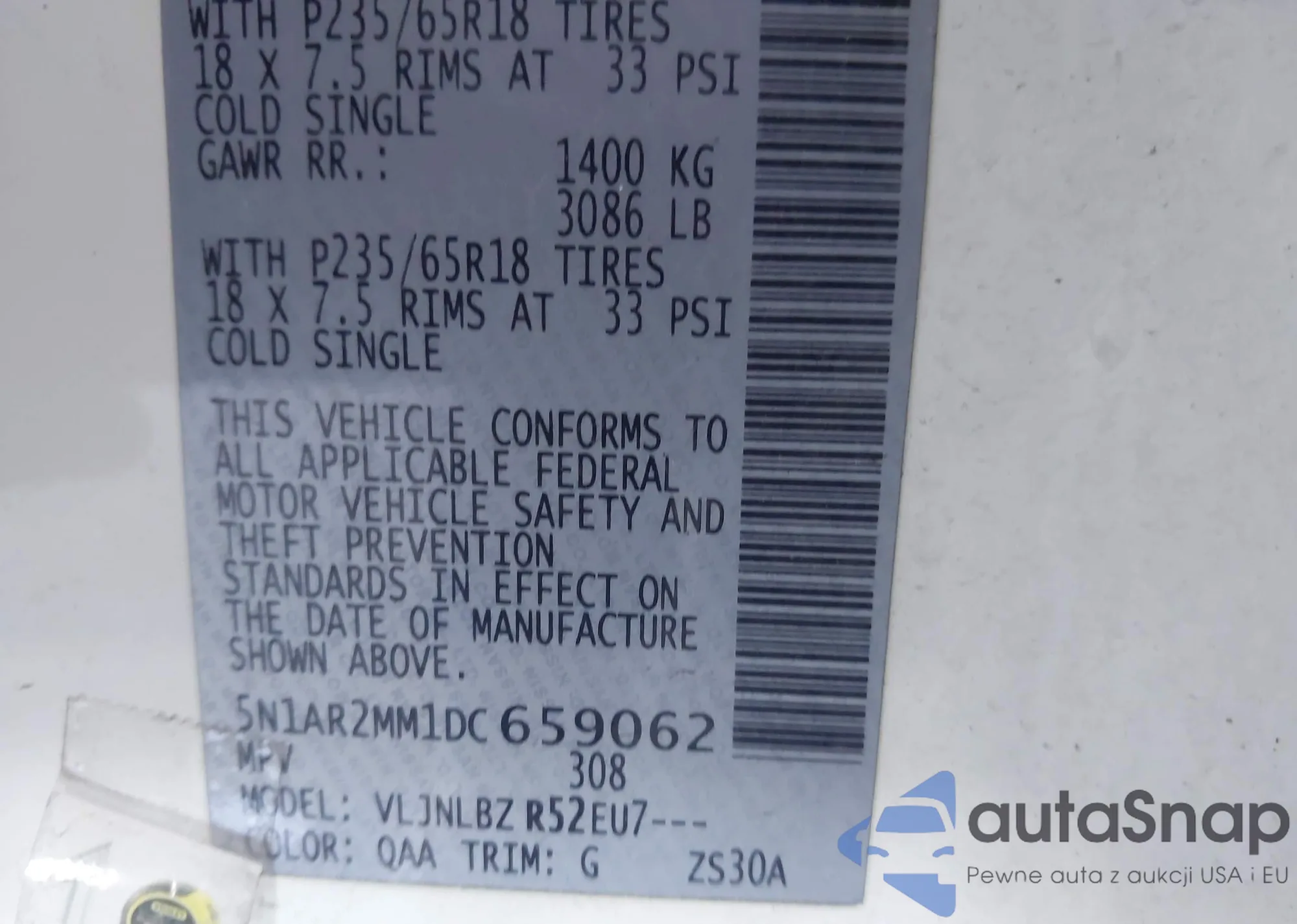 • VIN 5N1AR2MM1DC659062