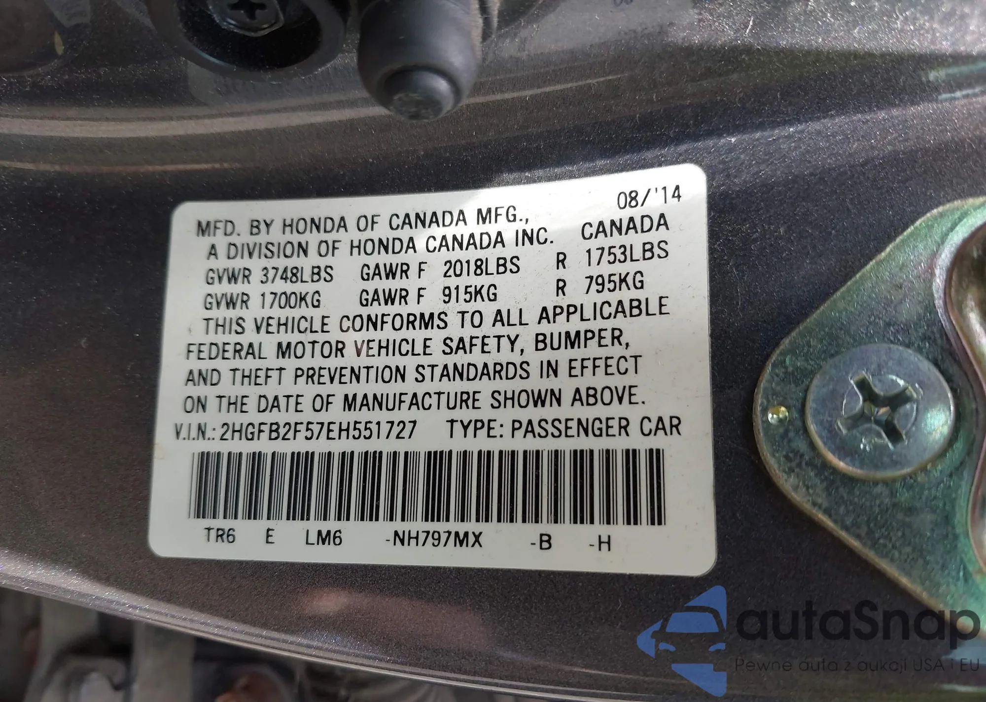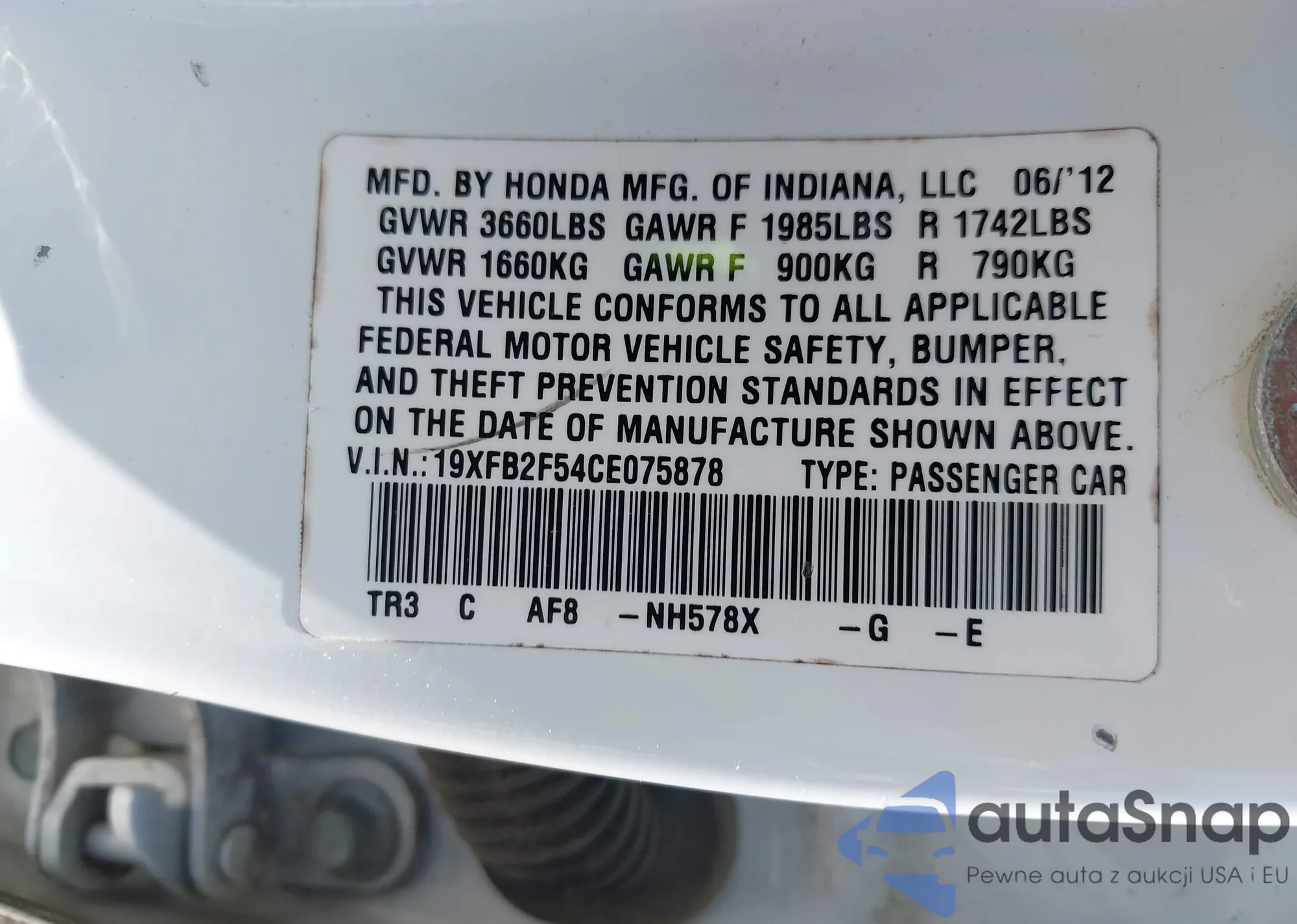 • VIN 5J6RM4H75CL009746
