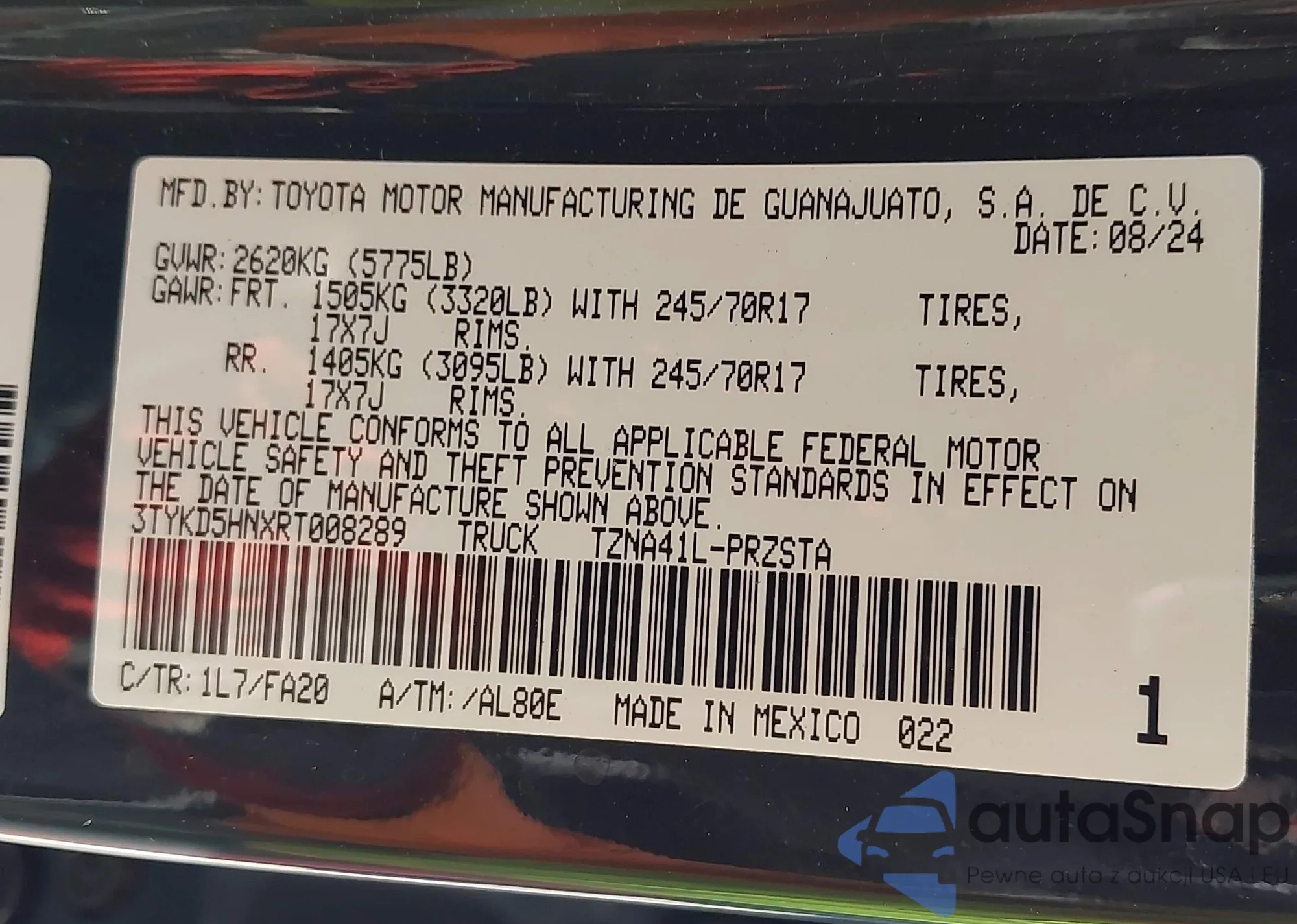 • VIN 3TYKD5HNXRT008289