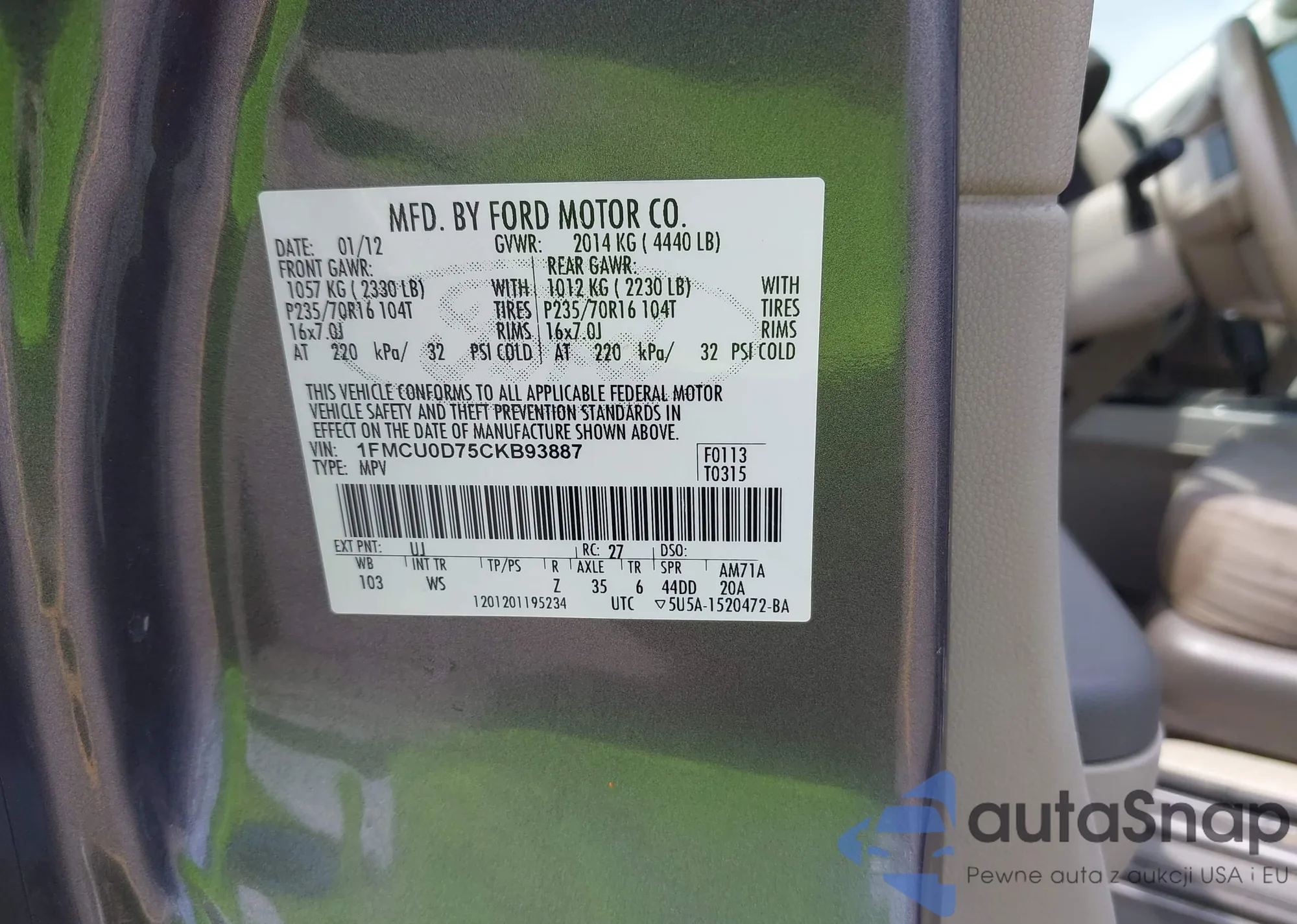 • VIN 1FMCU0D75CKB93887