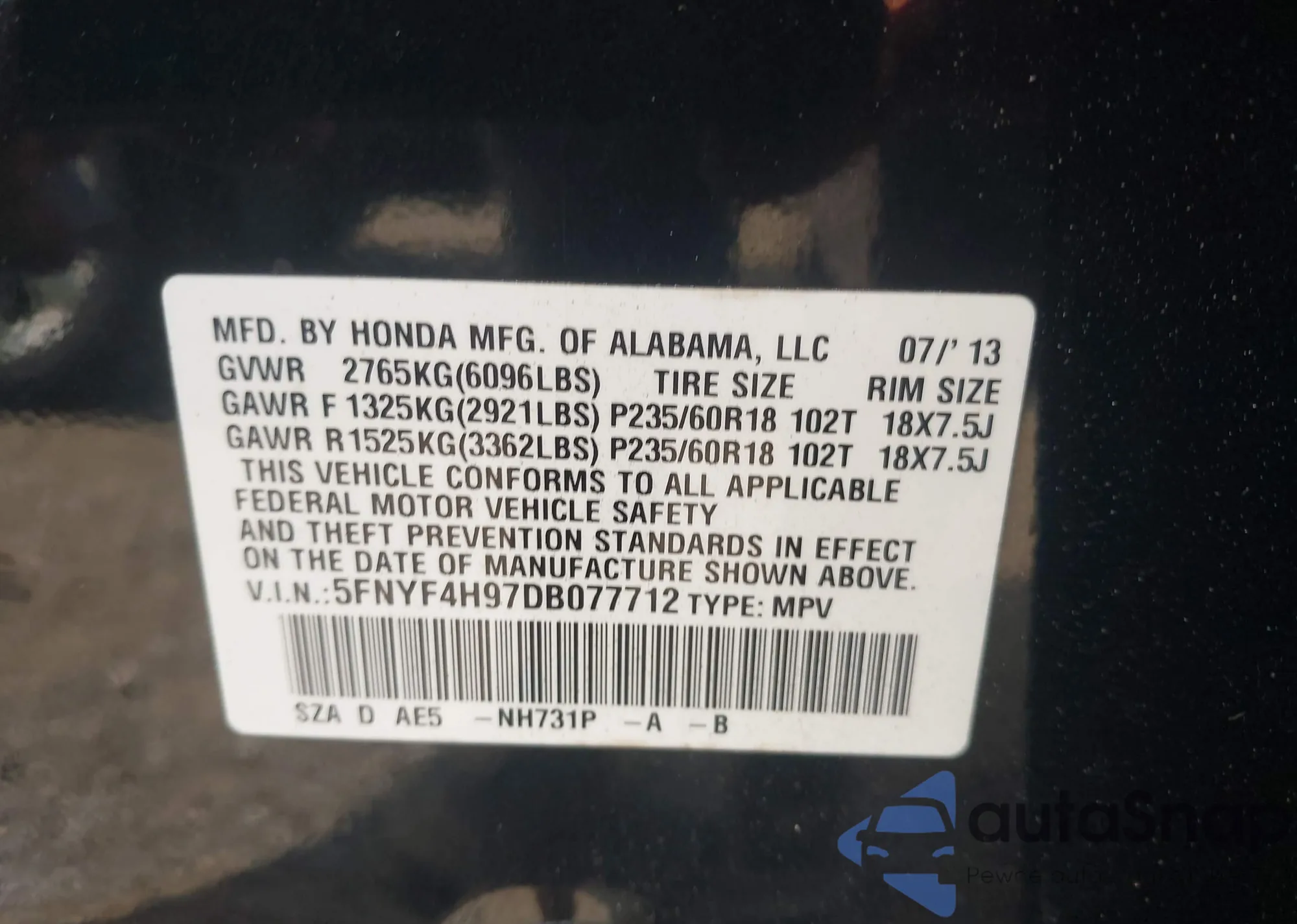 • VIN 5TDKZRFHXHS509618