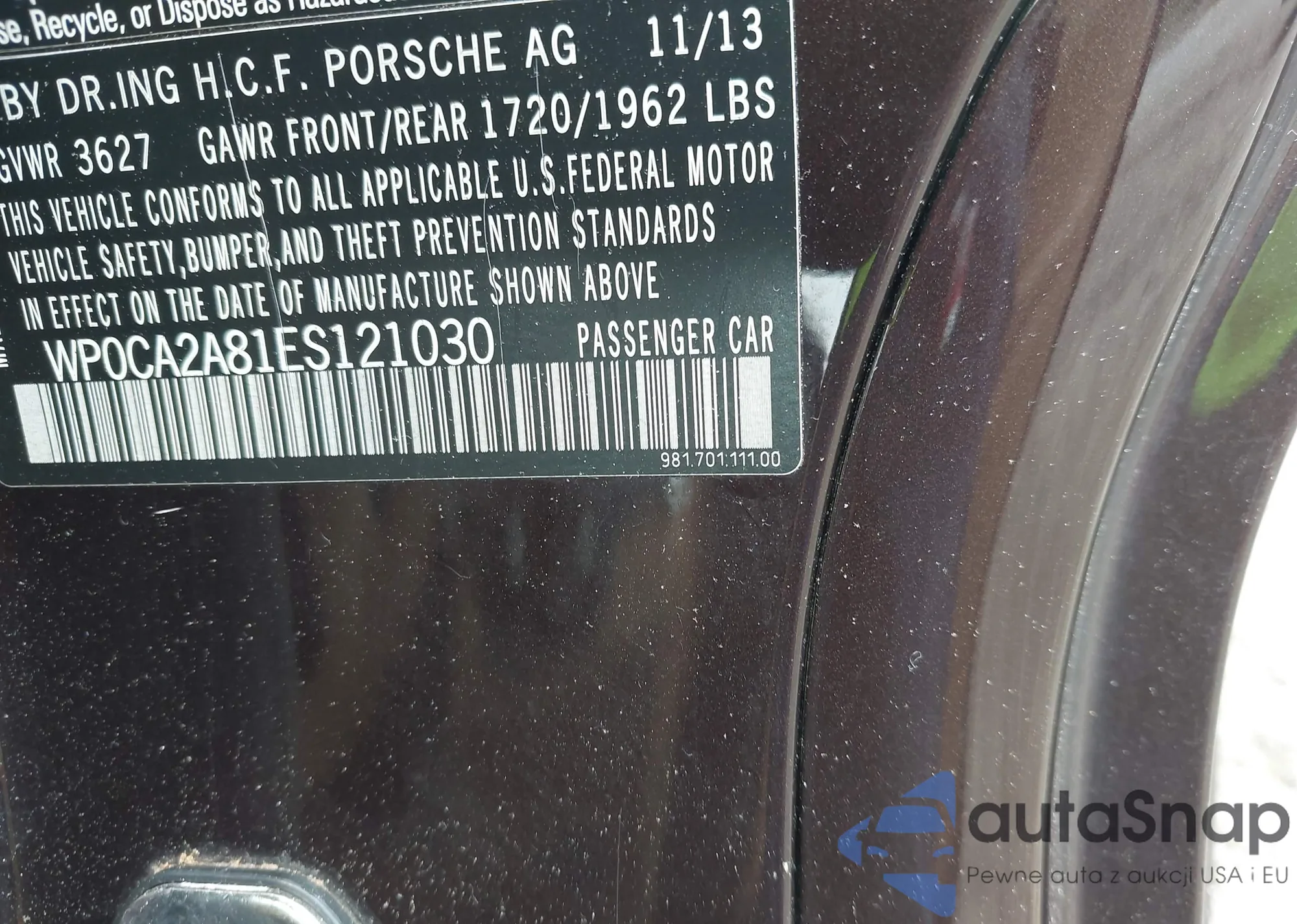 LOT: 42690064 VIN: WP0CA2A81ES121030