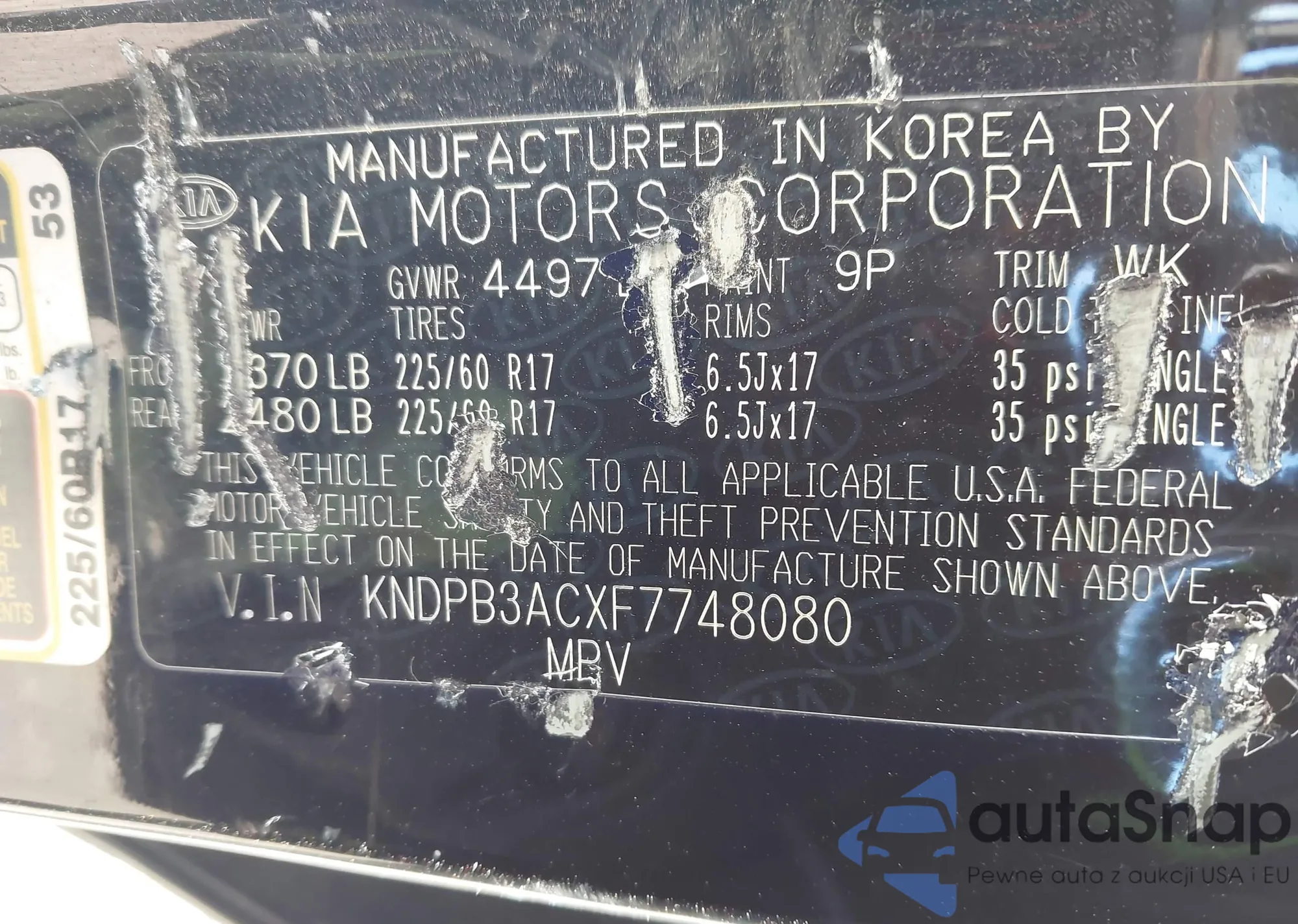 • VIN KNDPB3ACXF7748080