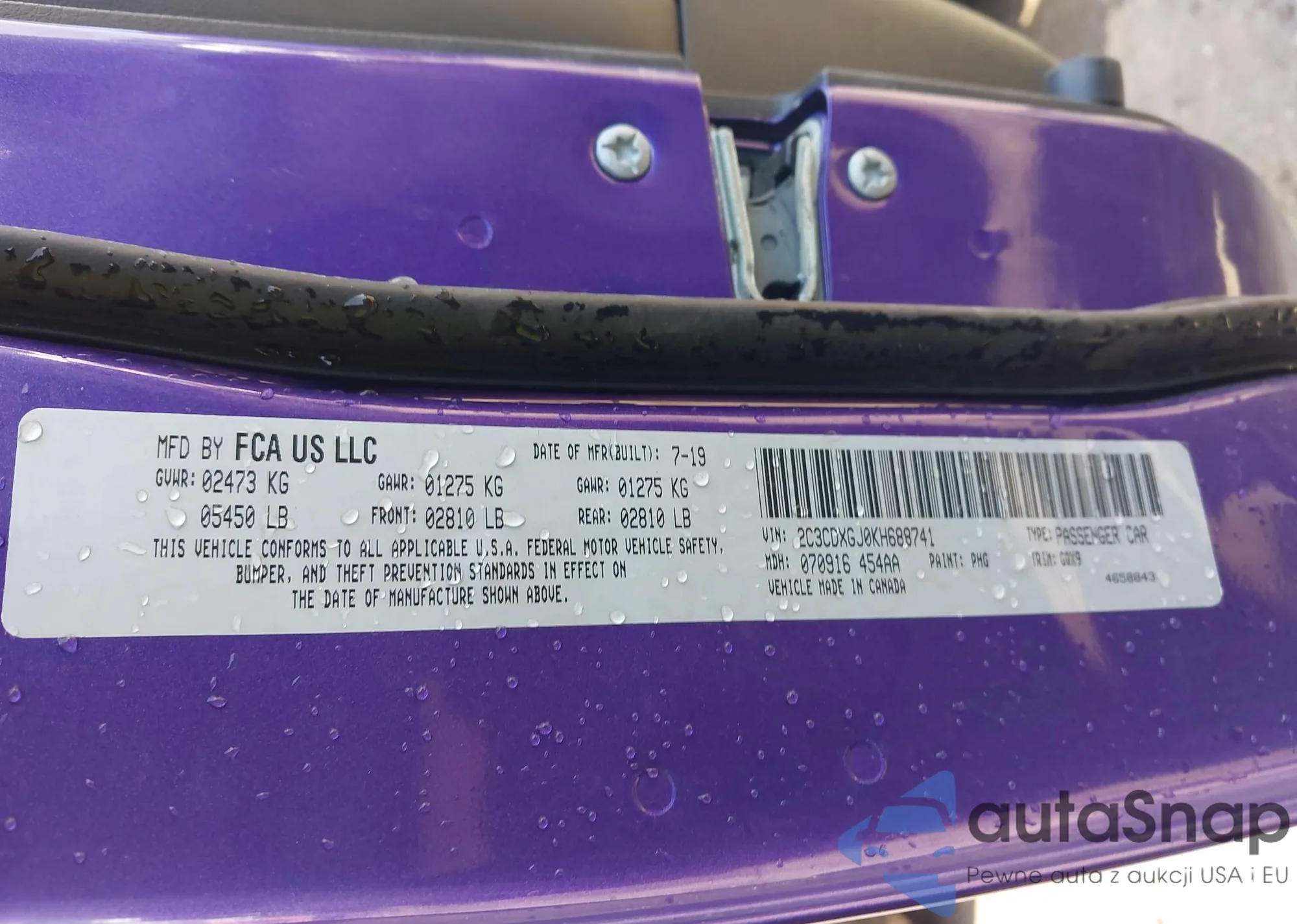 • VIN 2C3CDXGJ0KH688741