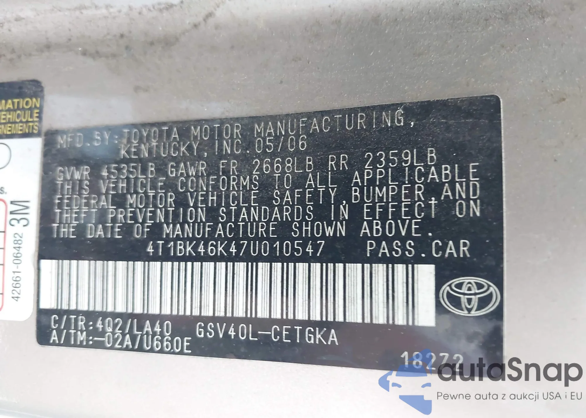 • VIN 4T1BK46K47U010547