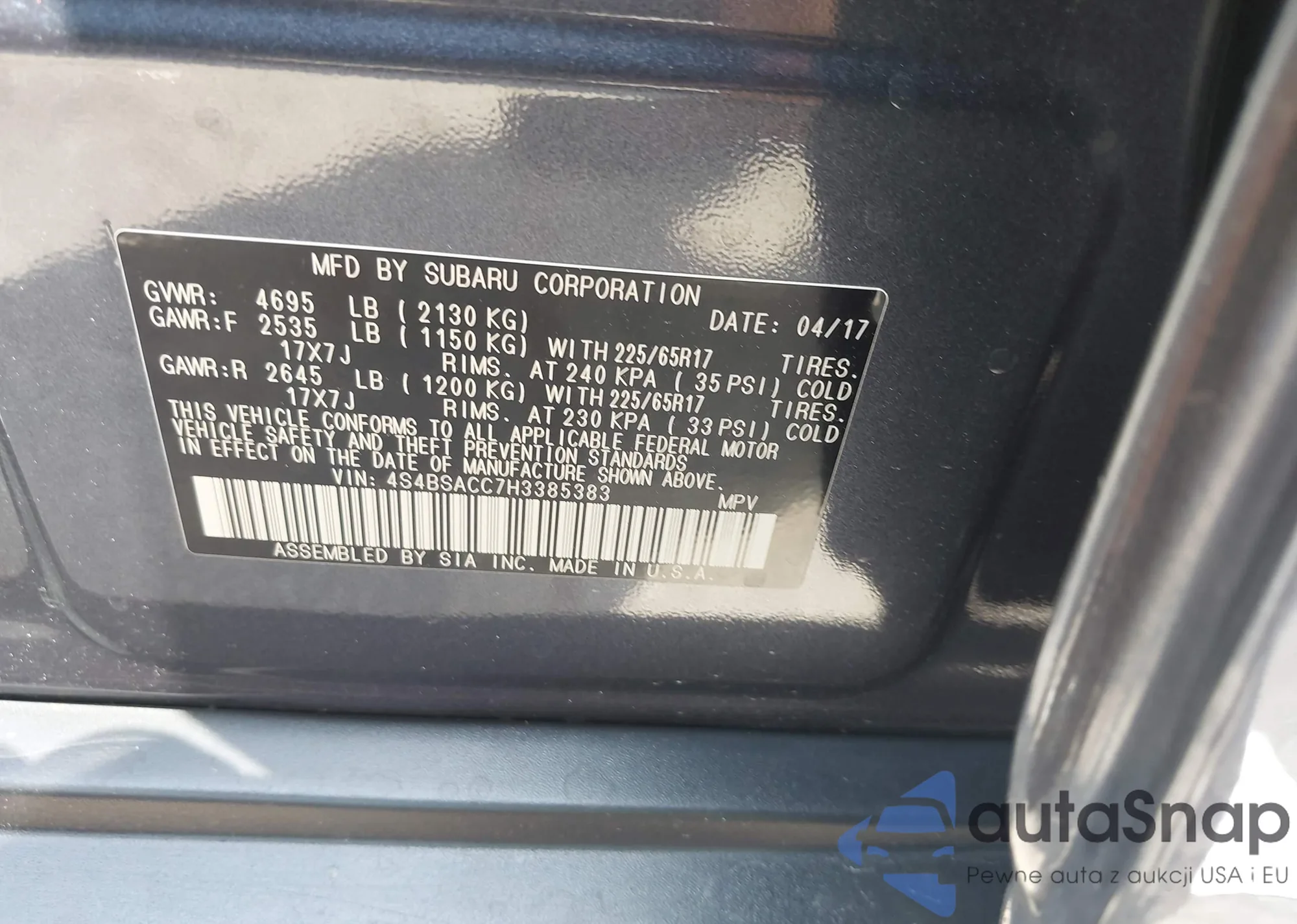 • VIN 4S4BSACC7H3385383