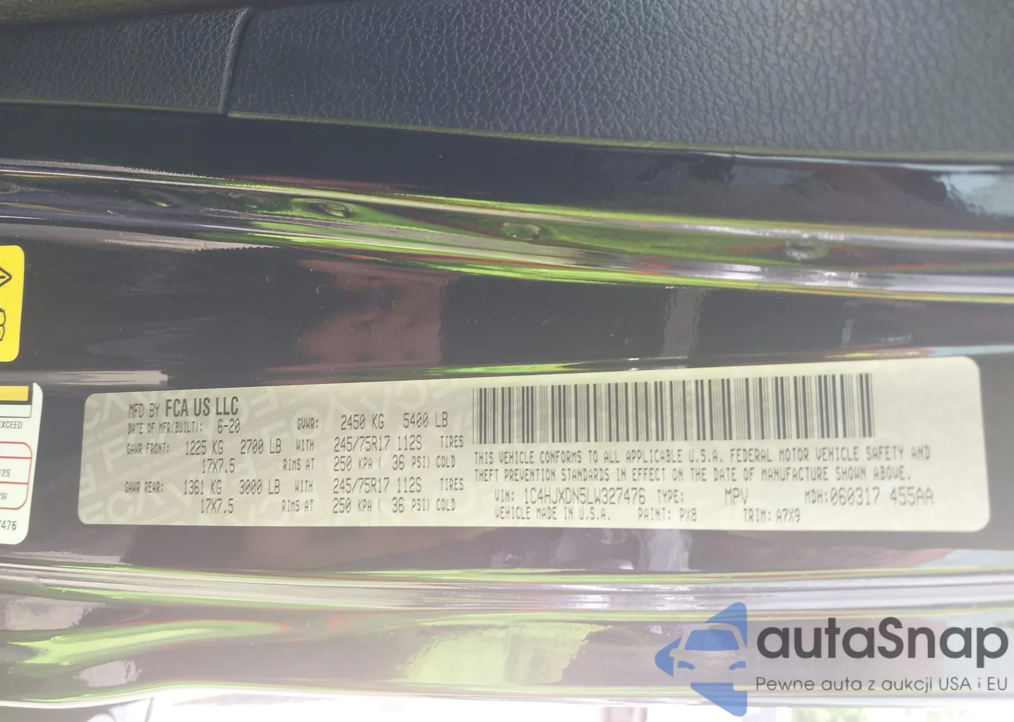 2020 Jeep Wrangler Unlimited Sport S 4X4 z USA, uszkodzony, nr VIN 1C4HJXDN5LW327476