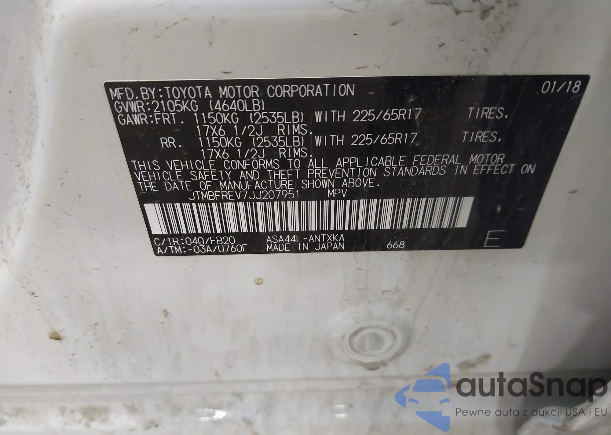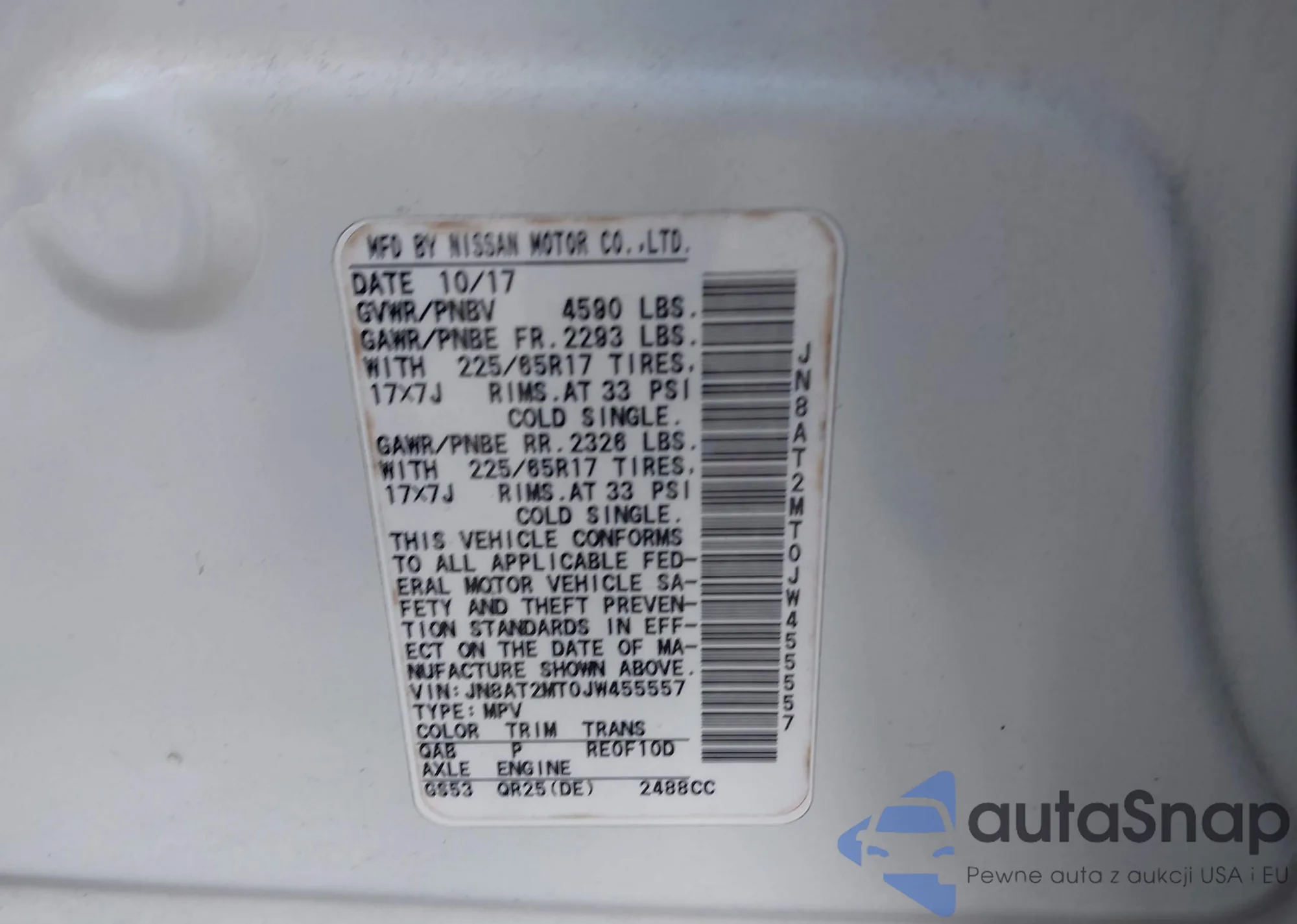 LOT: 42173199 VIN: JN8AT2MT0JW455557