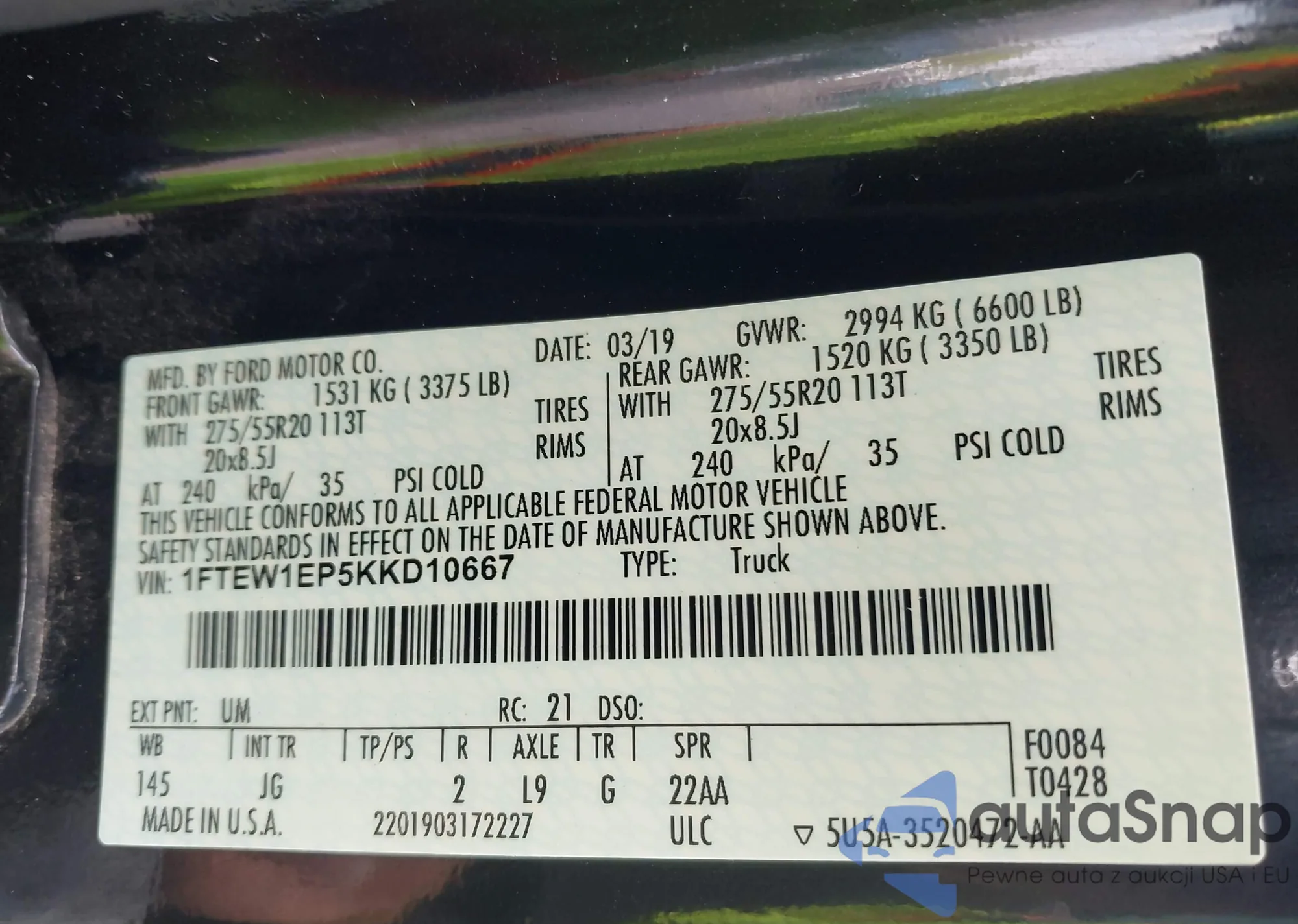 • VIN 1FTEW1EP5KKD10667