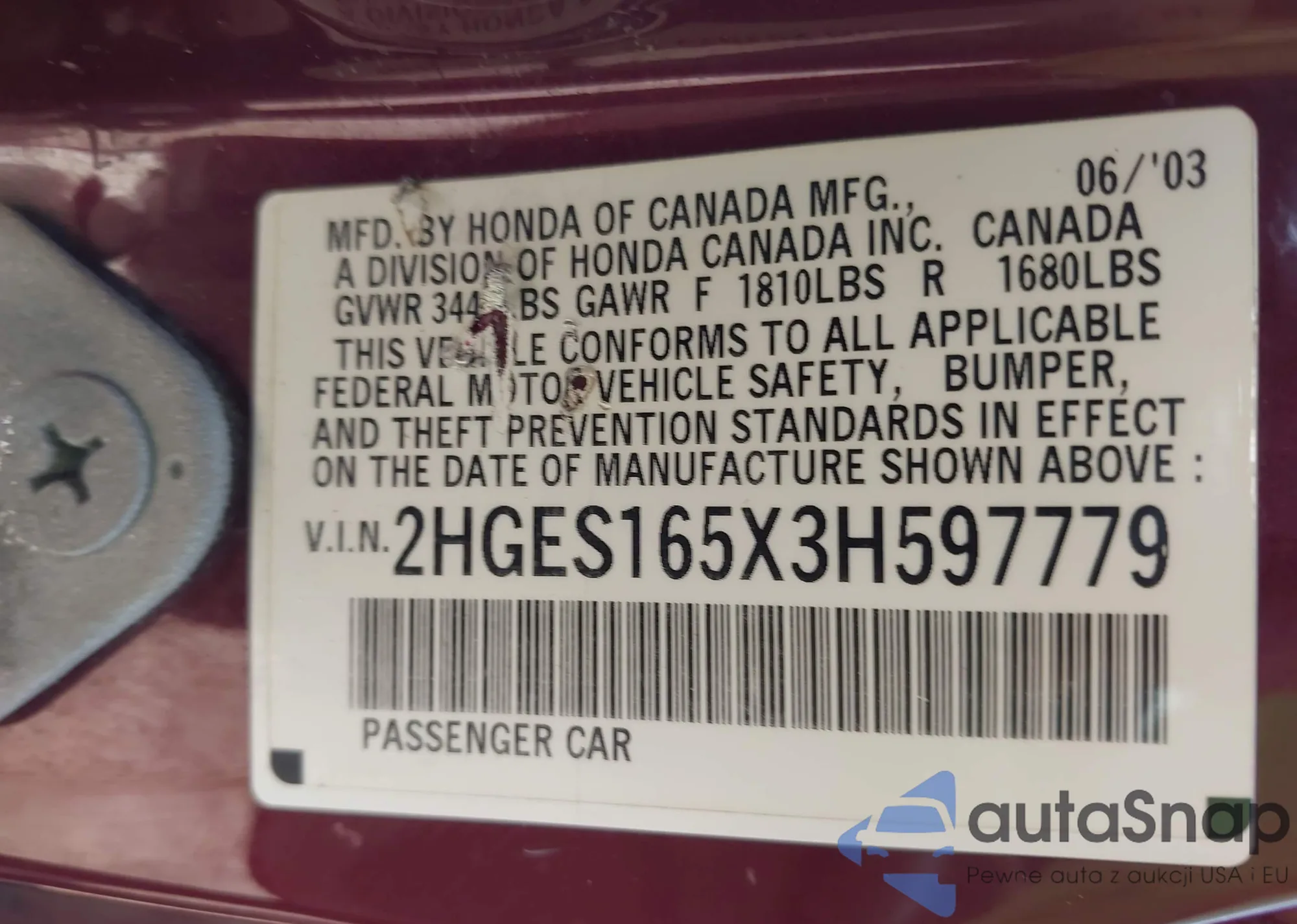 • VIN 2HGES165X3H597779