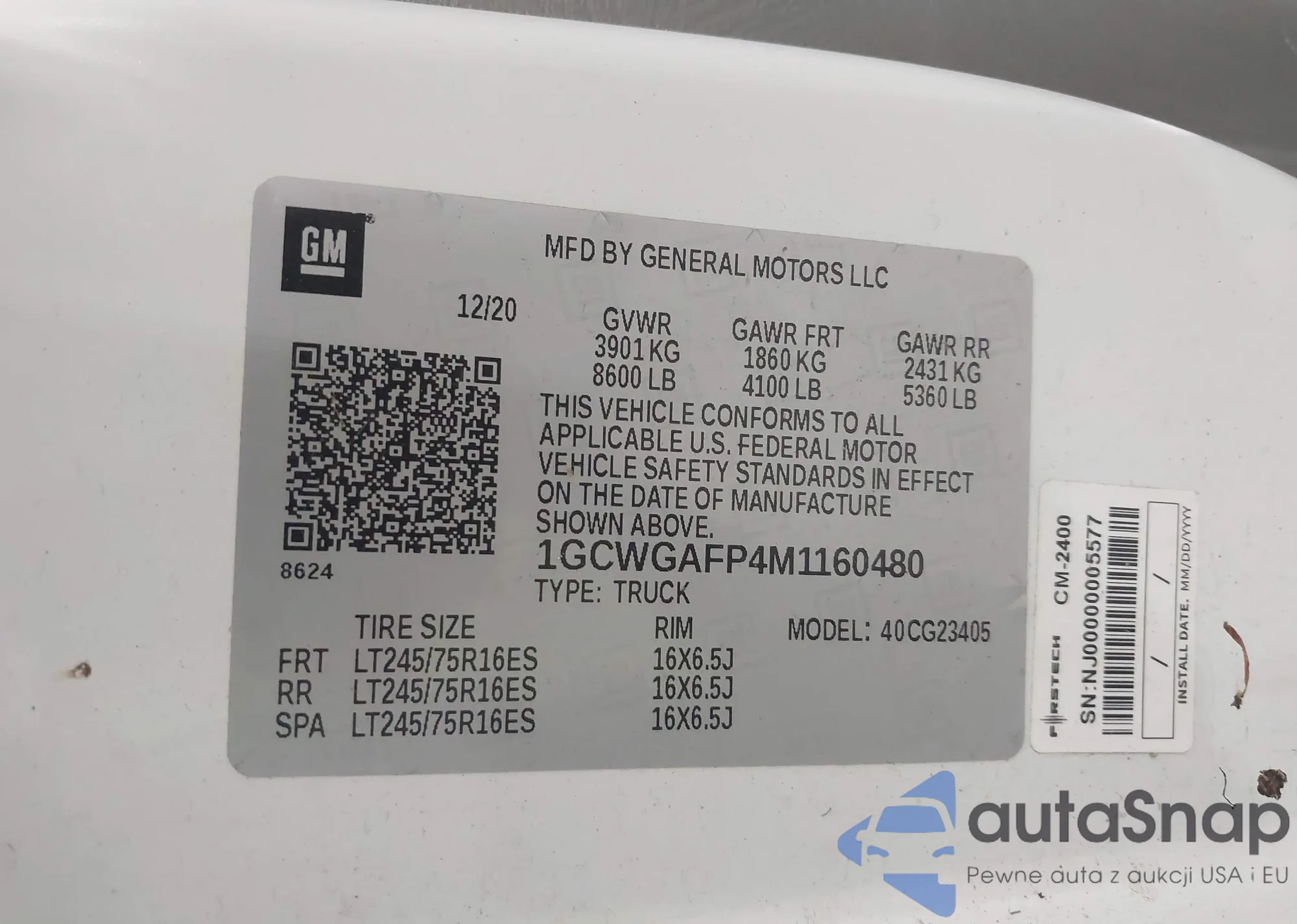 • VIN 1GCWGAFP4M1160480