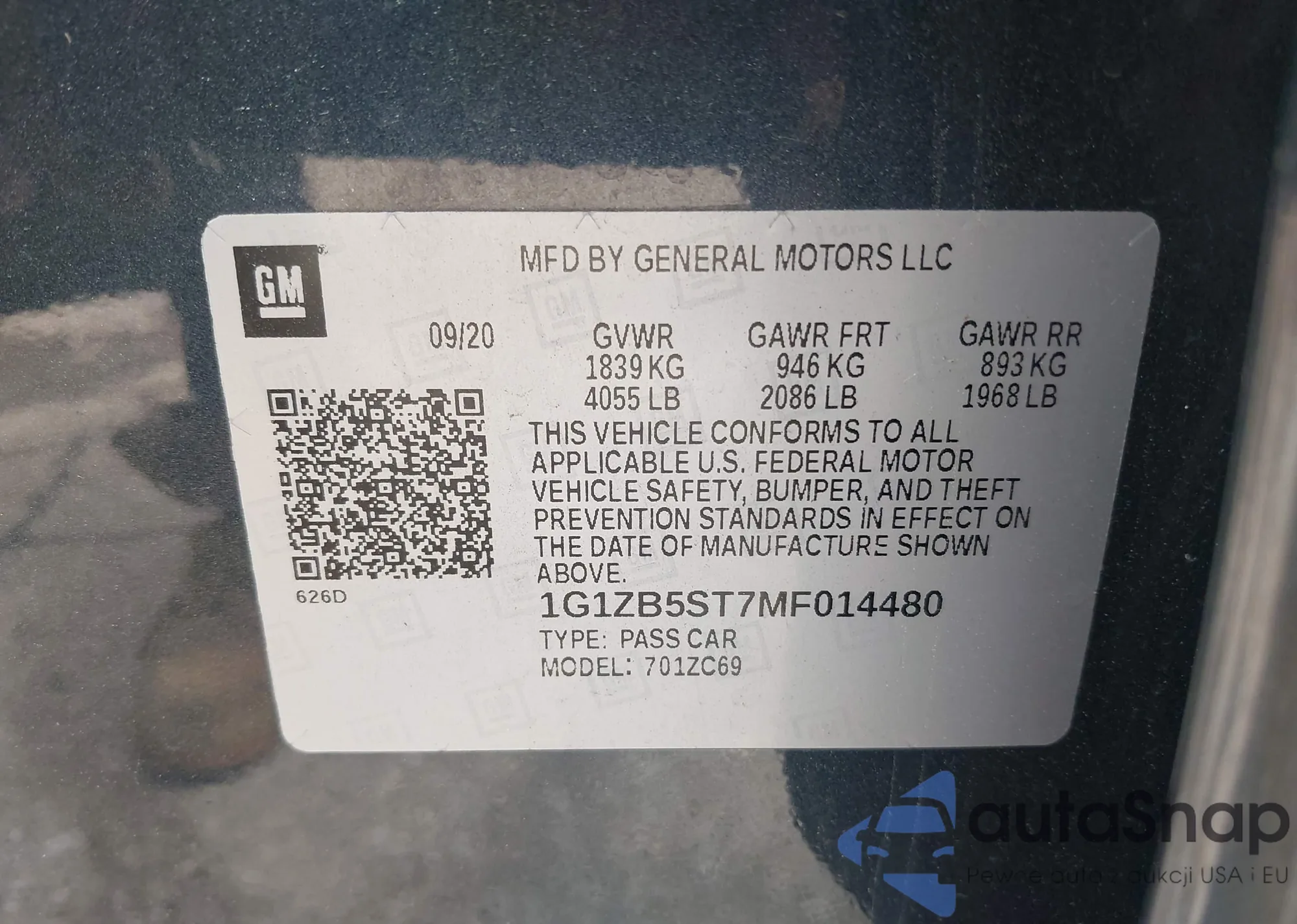• VIN 1G1ZB5ST7MF014480