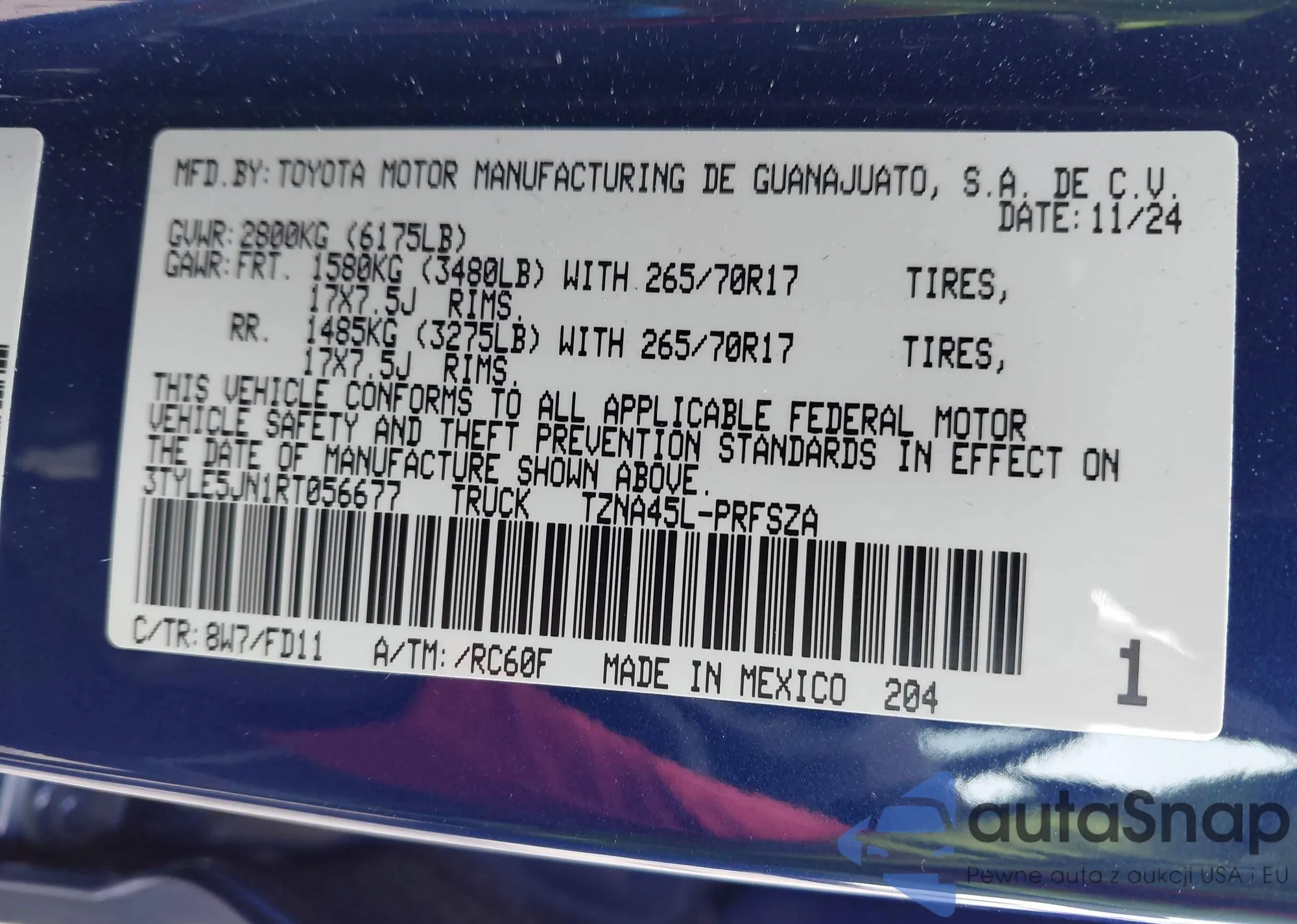 • VIN 3TYLE5JN1RT056677