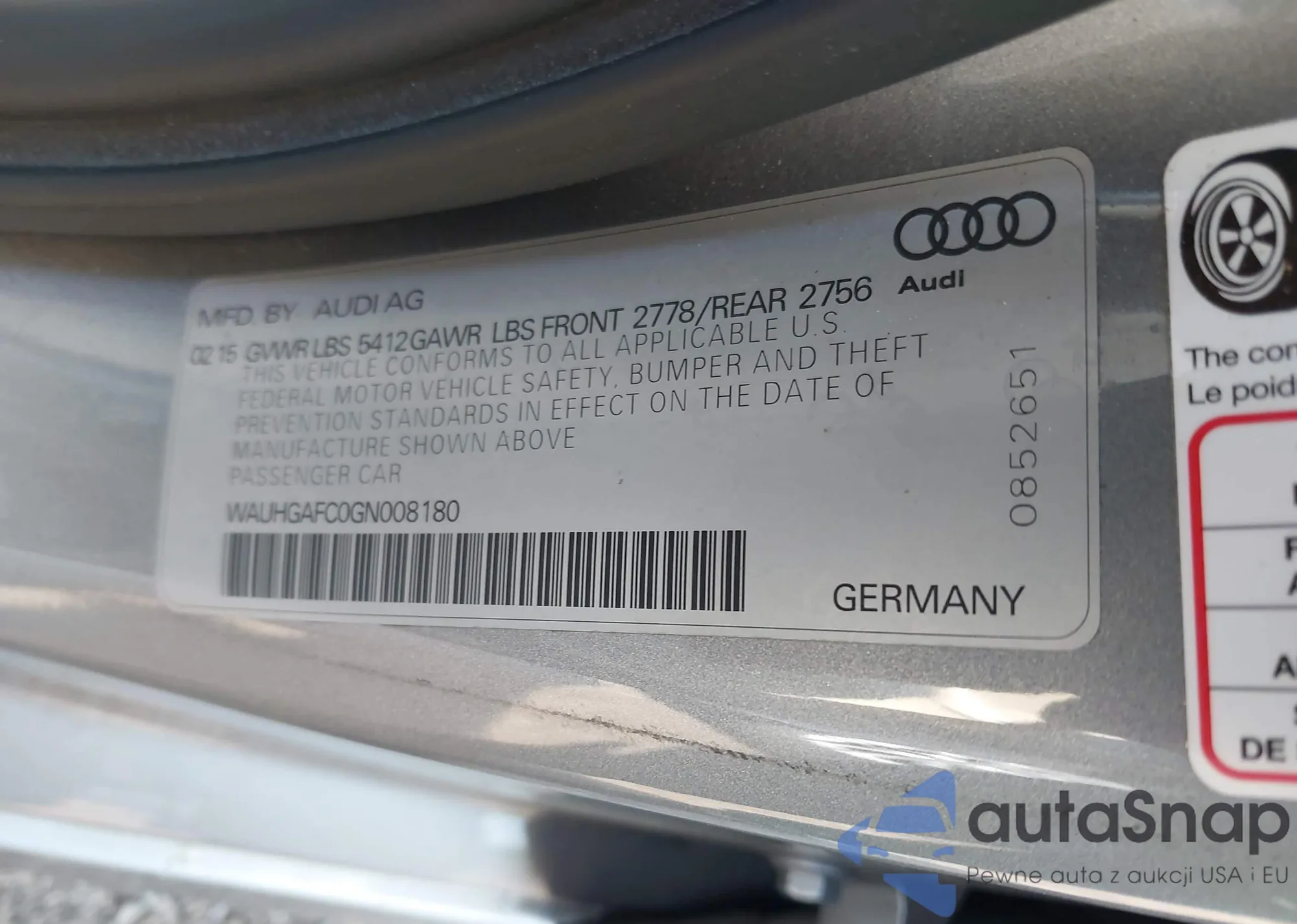 • VIN WBAFU7C52CDU58681