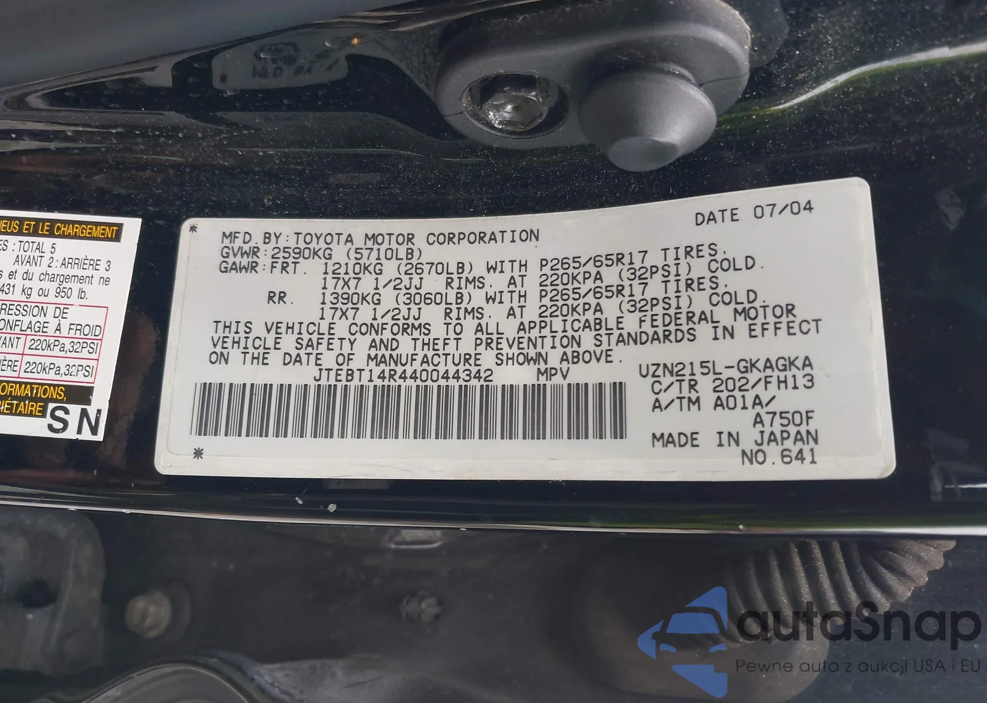 LOT: 42377299 VIN: JTEBT14R440044342