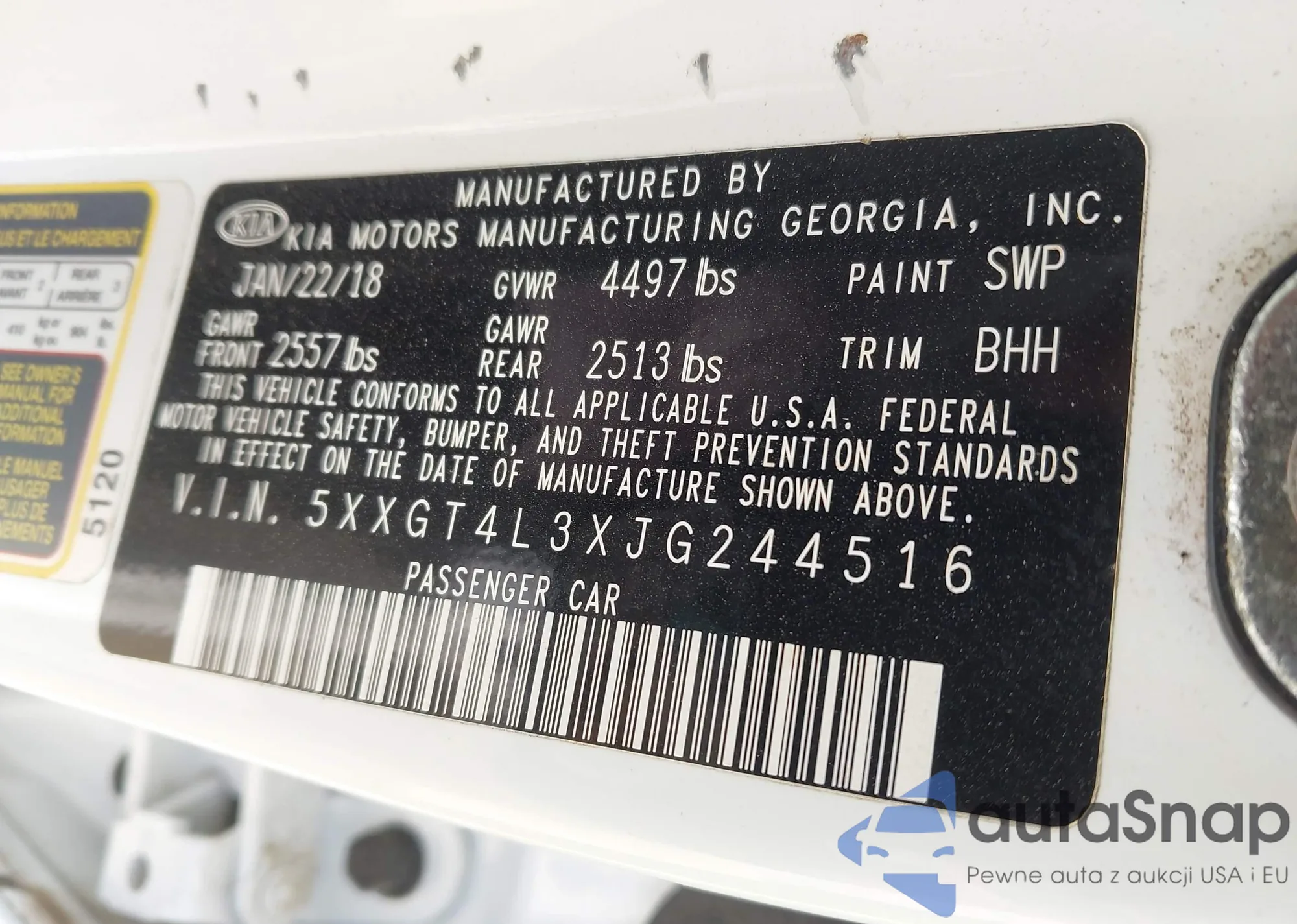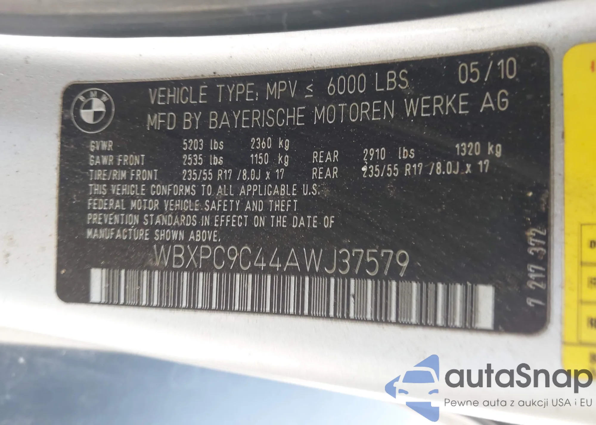 LOT: 42307392 VIN: WBXPC9C44AWJ37579