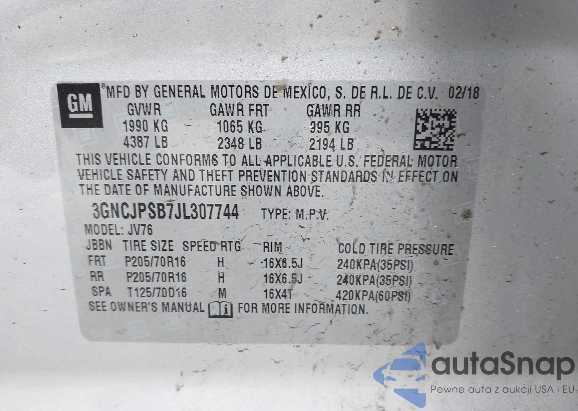 LOT: 41607427 VIN: 1C4PJLDB4GW244007