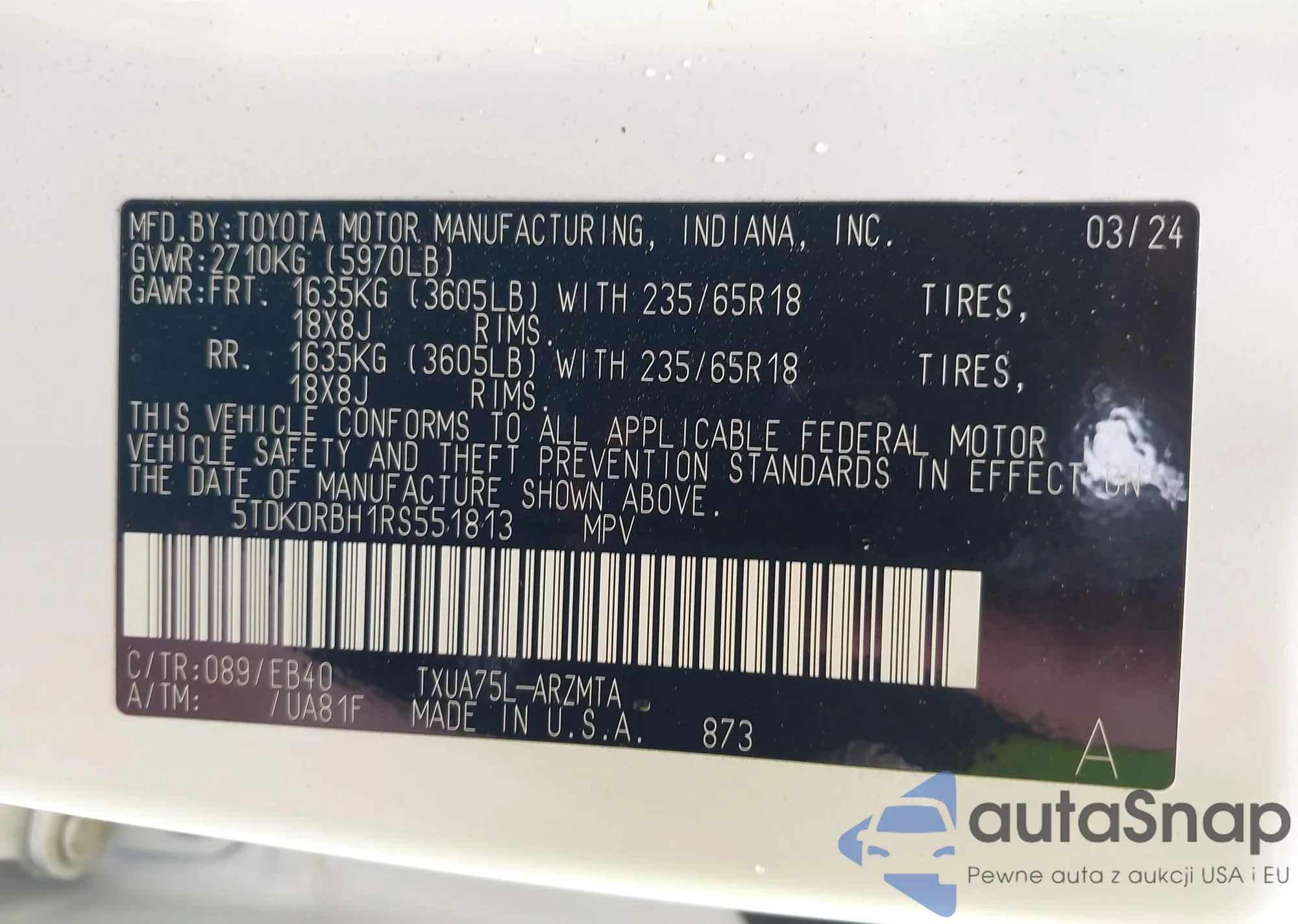 • VIN 5TDKDRBH1RS551813