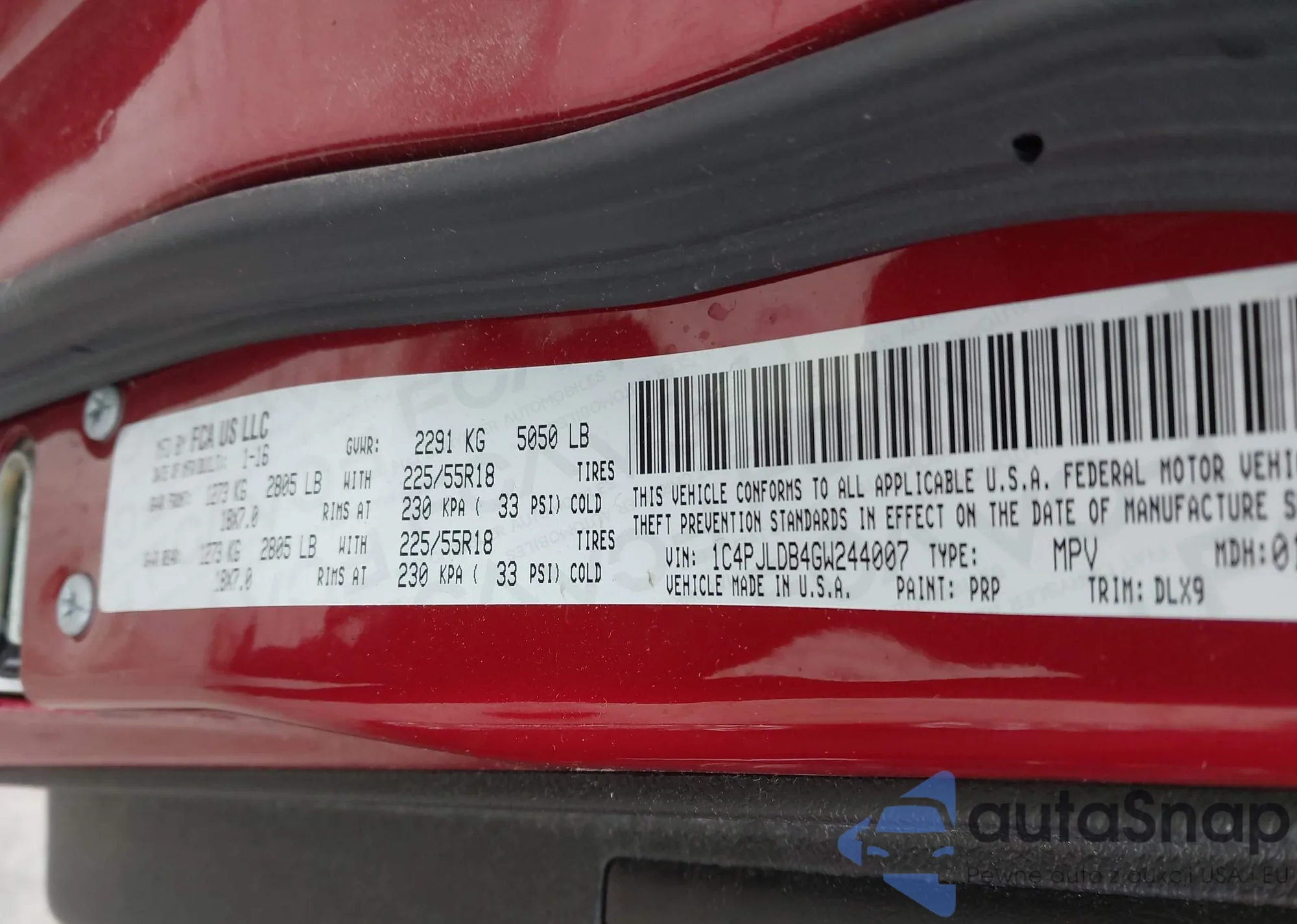 • VIN 1C4PJLDB4GW244007