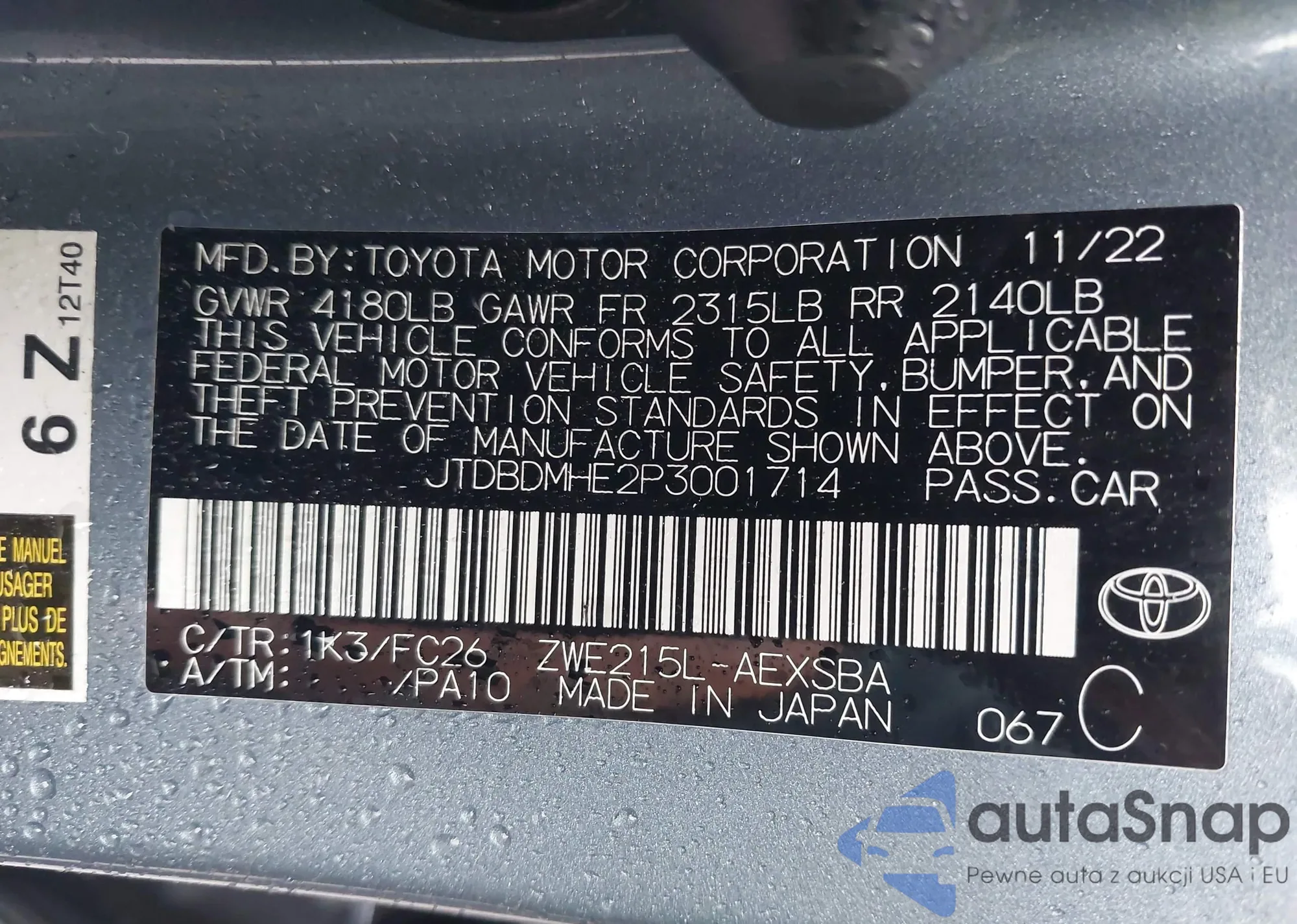LOT: 42323620 VIN: 2T3A1RFV7PC345557
