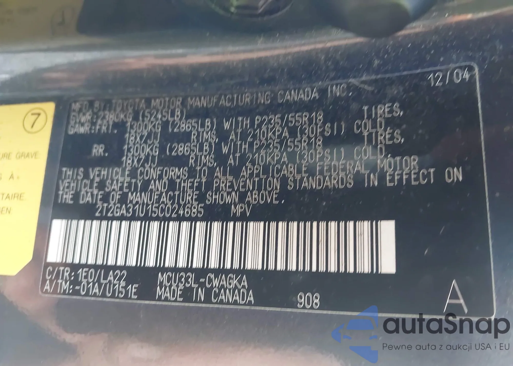 LOT: 42328155 VIN: 2T2GA31U15C024685