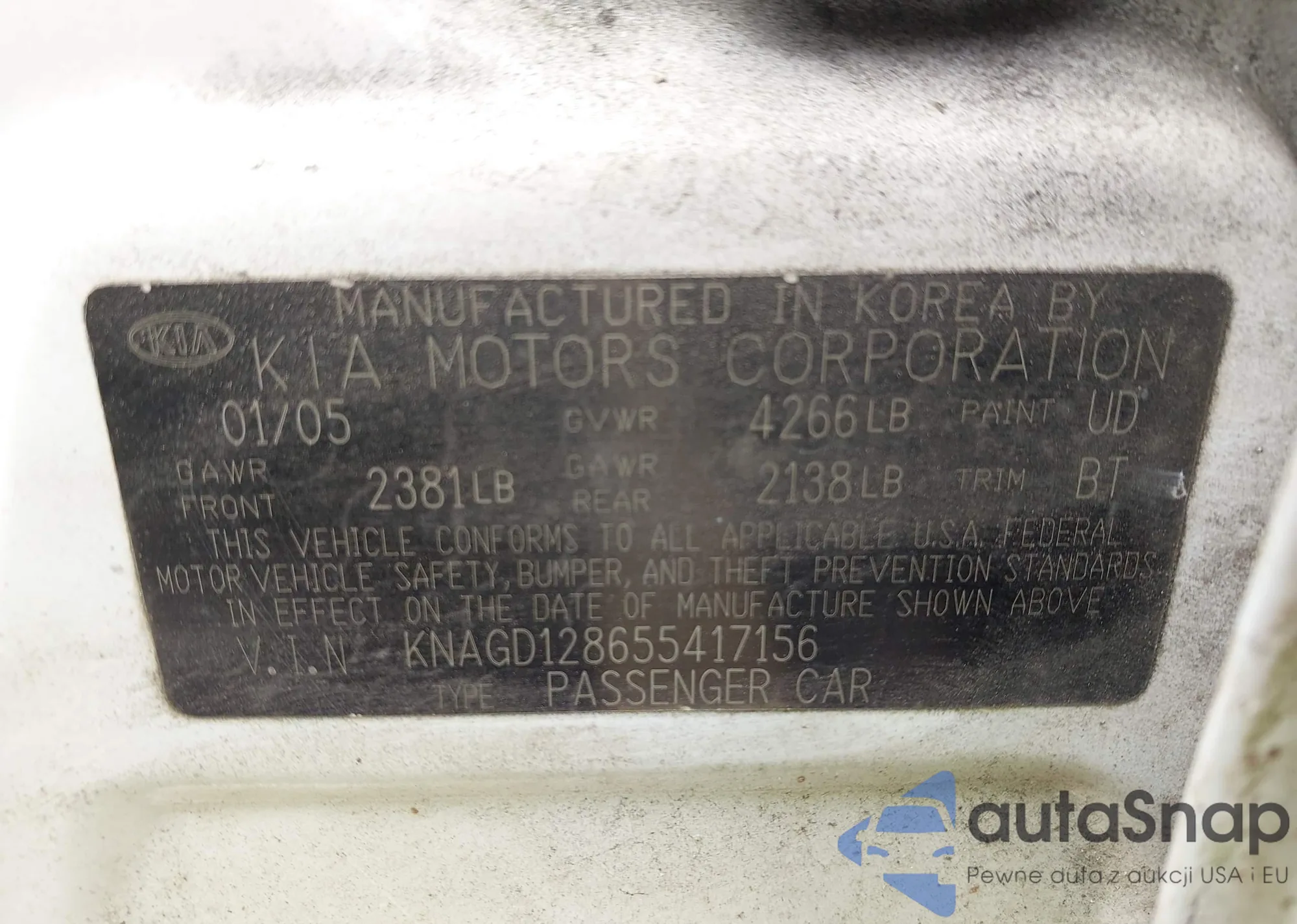 LOT: 42371618 VIN: KNAGD128655417156