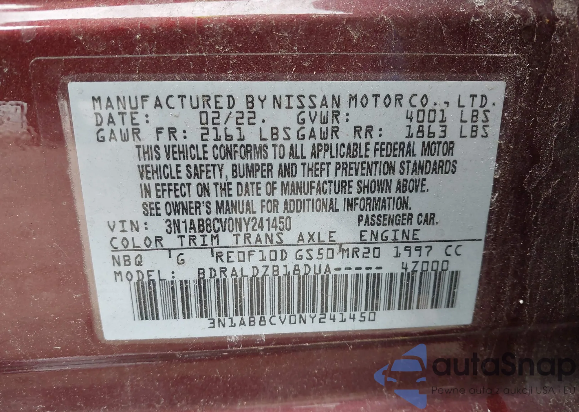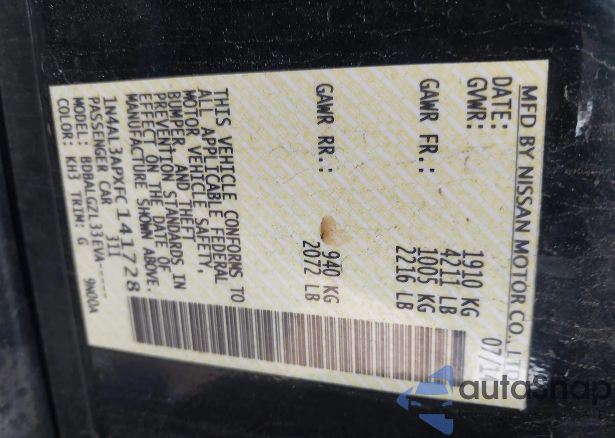 • VIN 1N4AL3APXFC141728