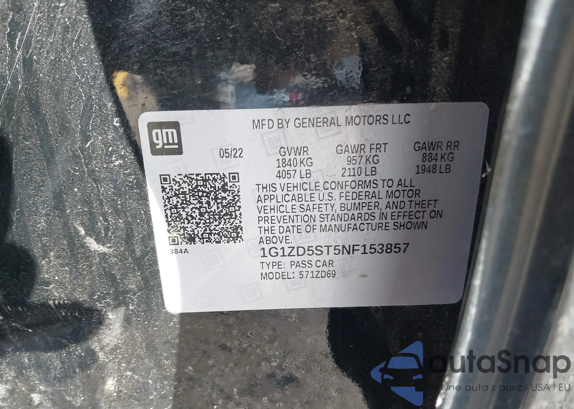 • VIN 1G1ZD5ST5NF153857
