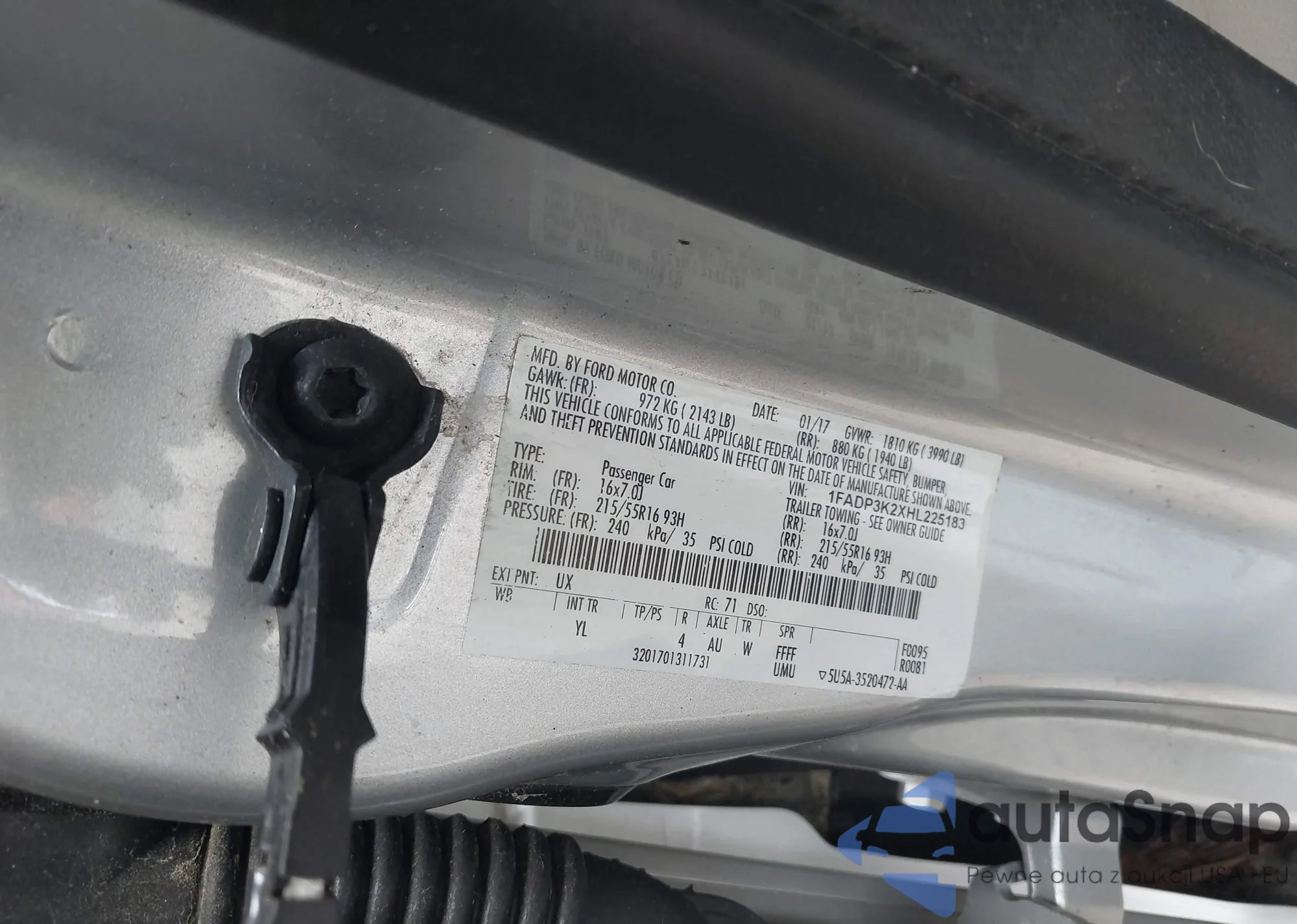 LOT: 42481647 VIN: 1FADP3K2XHL225183