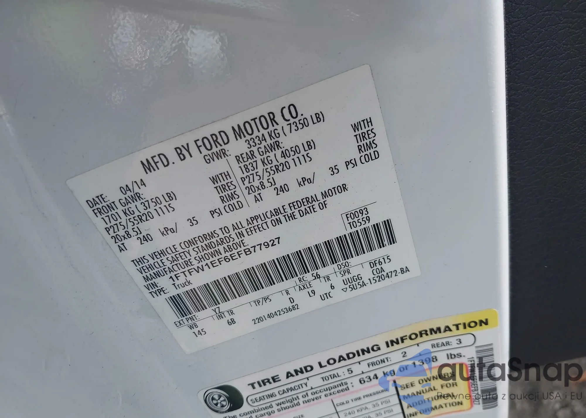 • VIN 1FTFW1EF6EFB77927