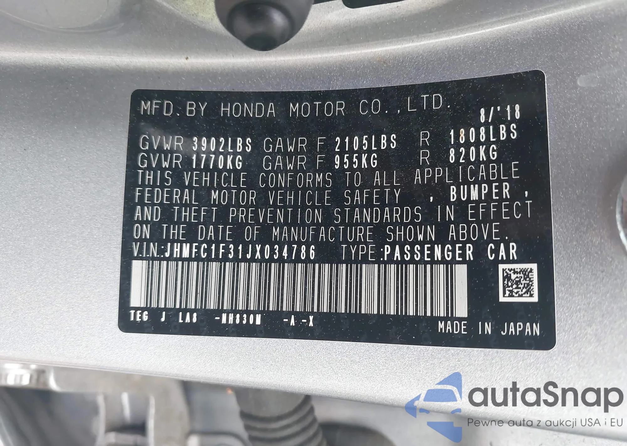 • VIN JHMFC1F31JX034786