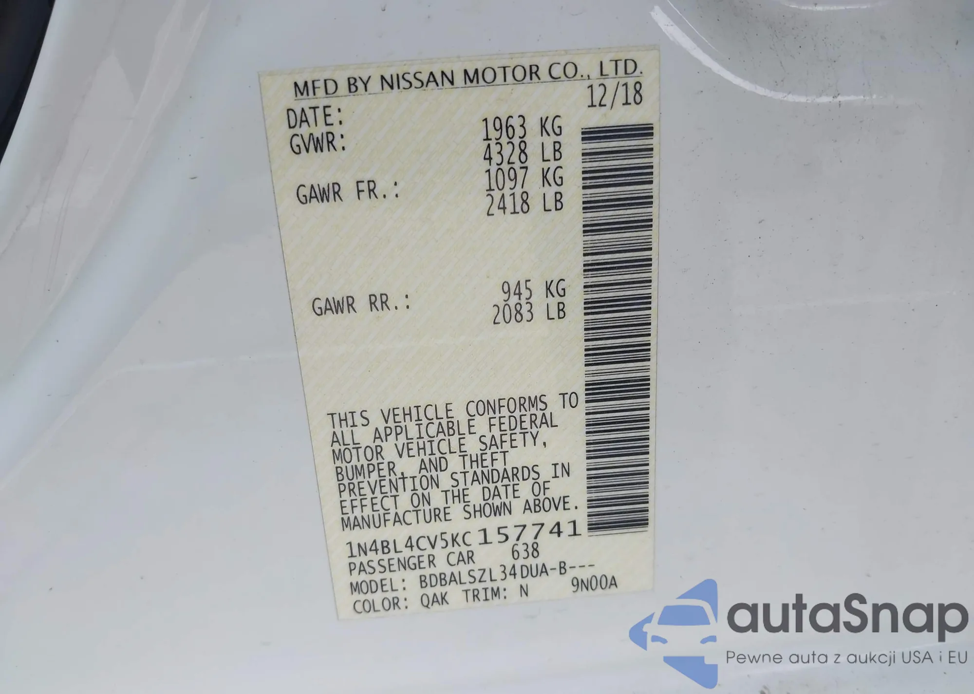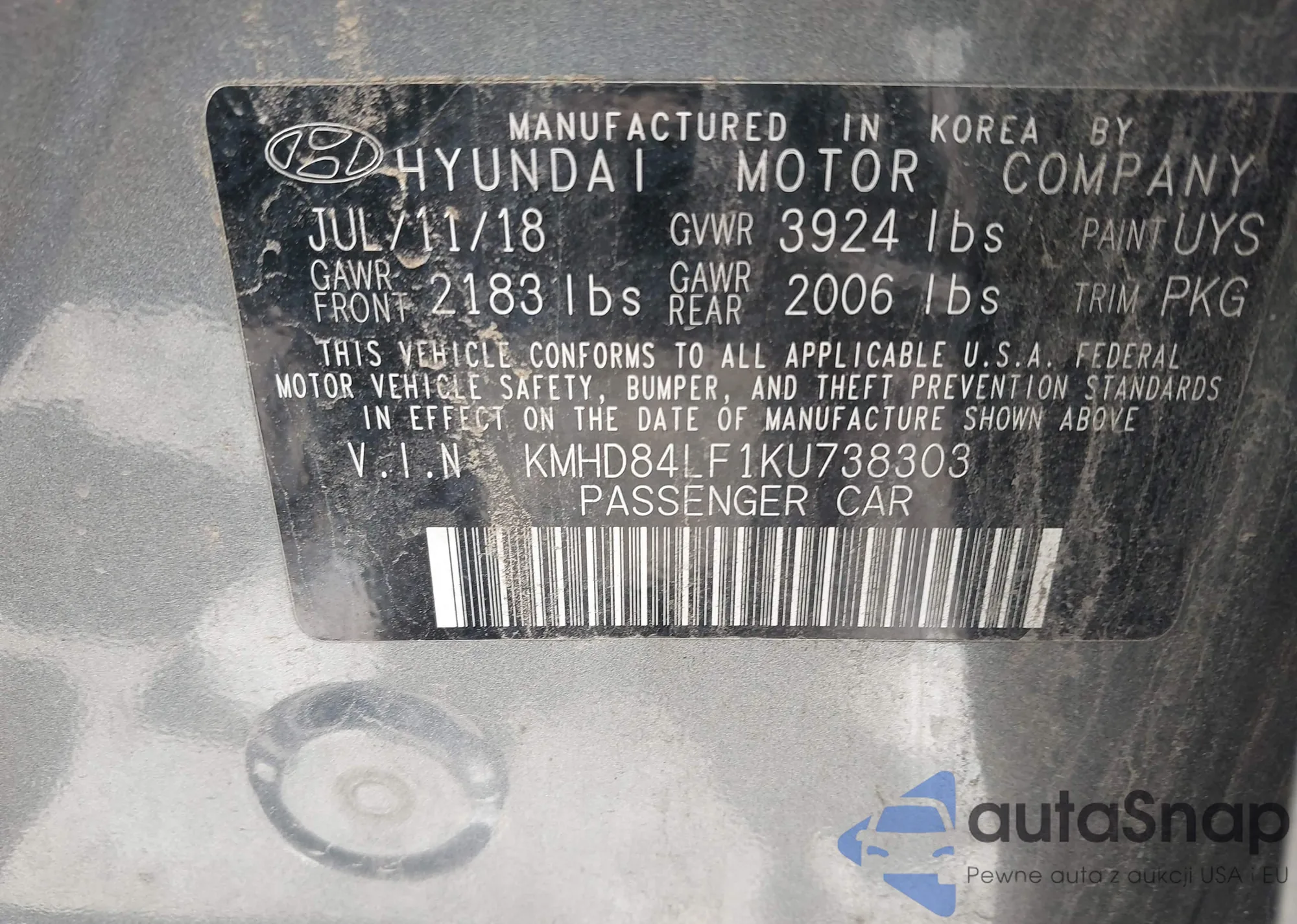 LOT: 41662083 VIN: KMHD84LF1KU738303