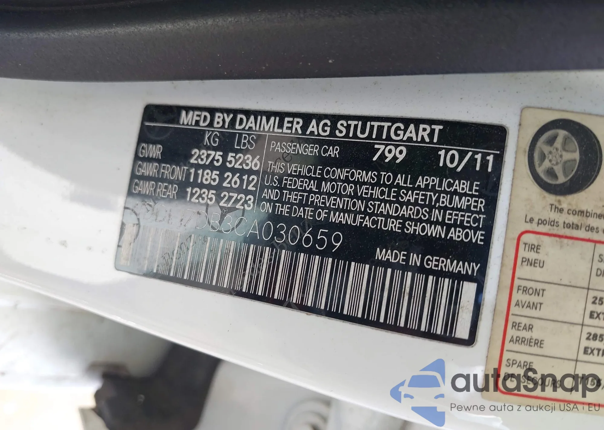 LOT: 42428359 VIN: WDDLJ7DB3CA030659
