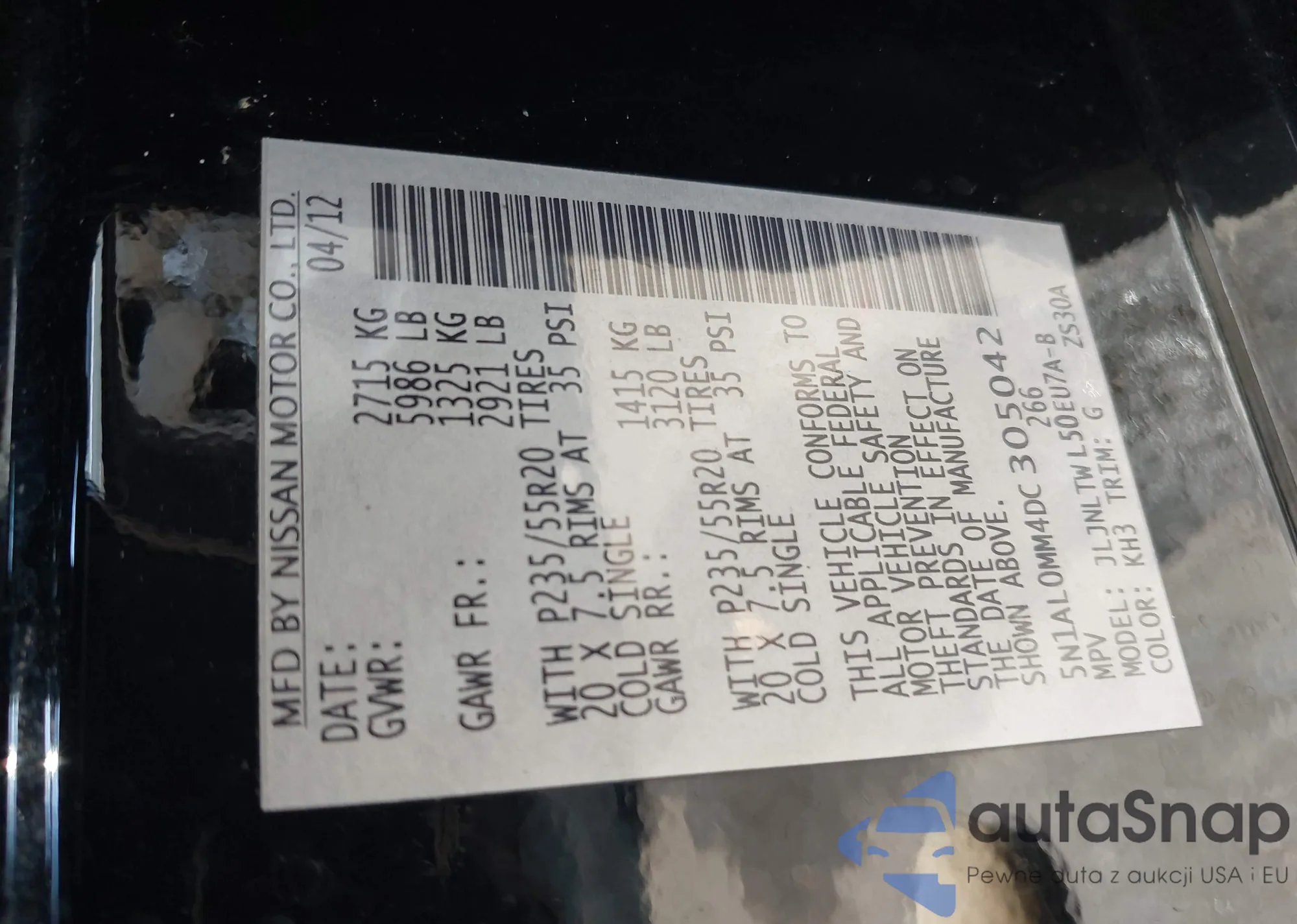 • VIN 5N1AL0MM4DC305042