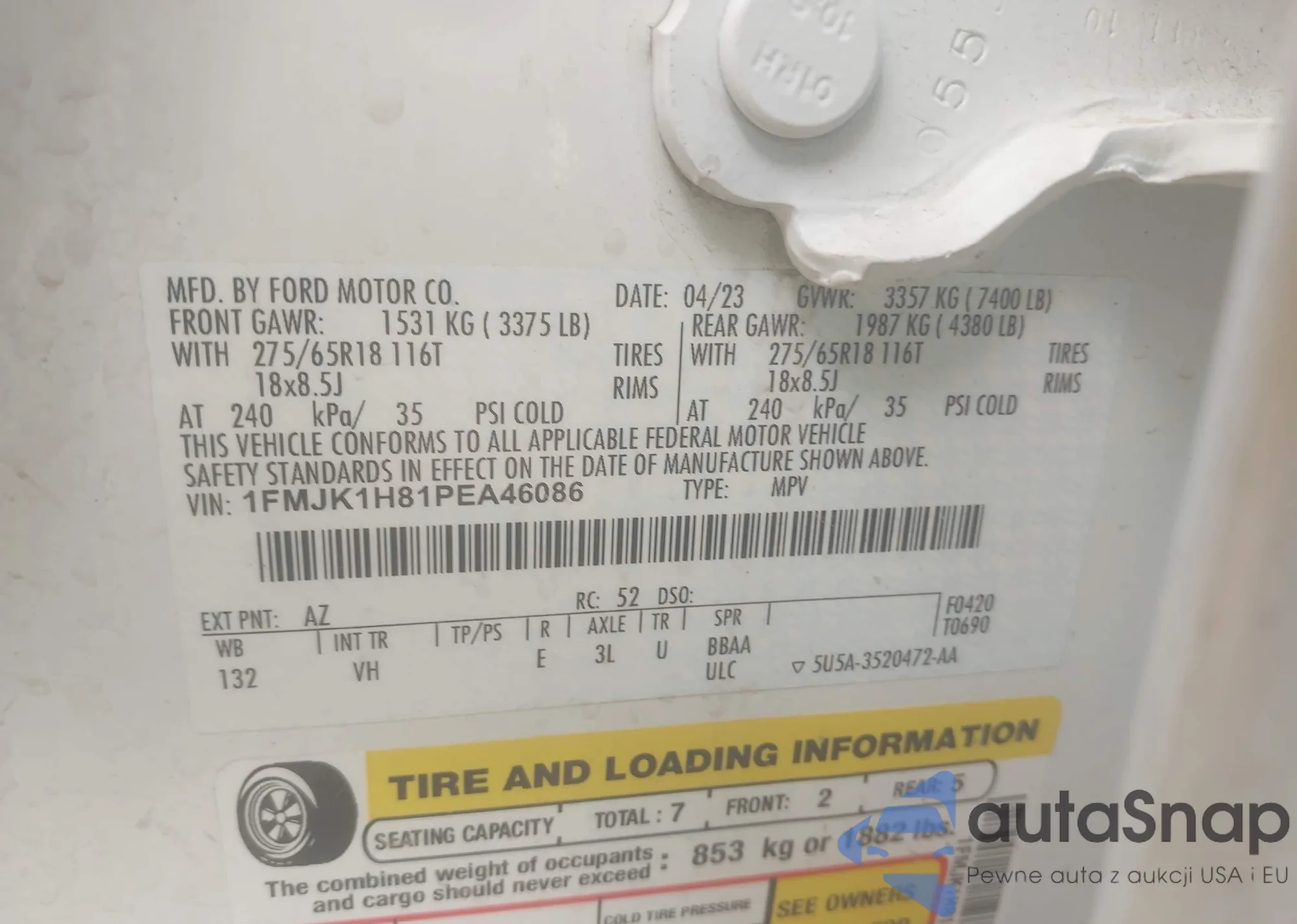 LOT: 42274985 VIN: 1FMJK1H81PEA46086